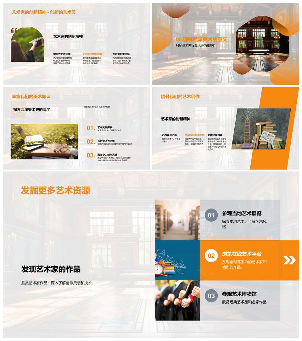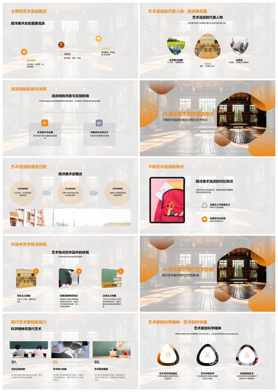 西洋美术史流派代表科学精神教育创作影响PPT模板推荐