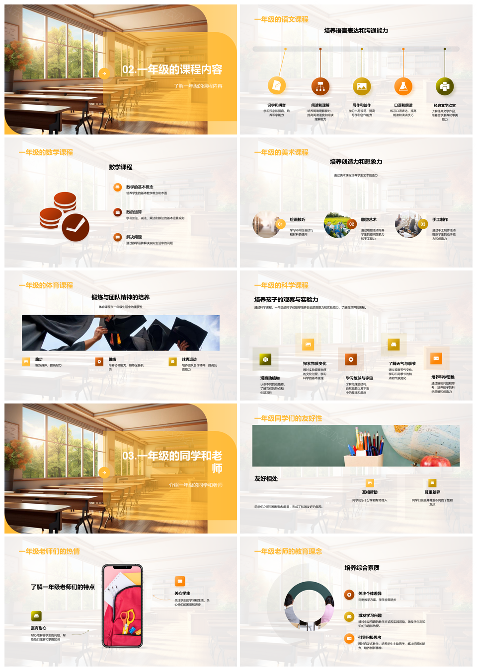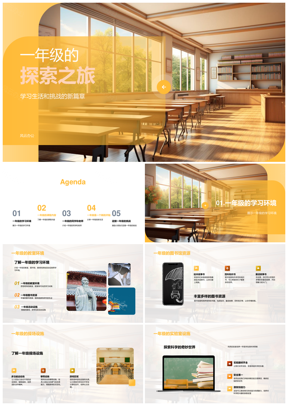 风云办公提供的一年级教室图书馆操场语数课程探索PPT模板,下载格式为pptx,一共29页,作品中文字及图均可以修改和编辑,图片更改请在作品中右键图片并更换,文字修改请直接点击文字进行修改。