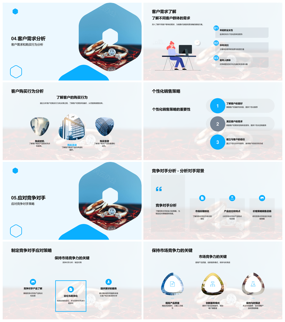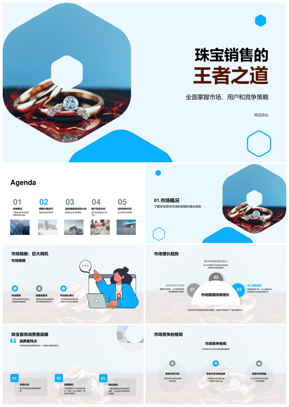 风云办公提供的珠宝销售策略市场趋势与产品技巧PPT模板,下载格式为pptx,一共26页,作品中文字及图均可以修改和编辑,图片更改请在作品中右键图片并更换,文字修改请直接点击文字进行修改。
