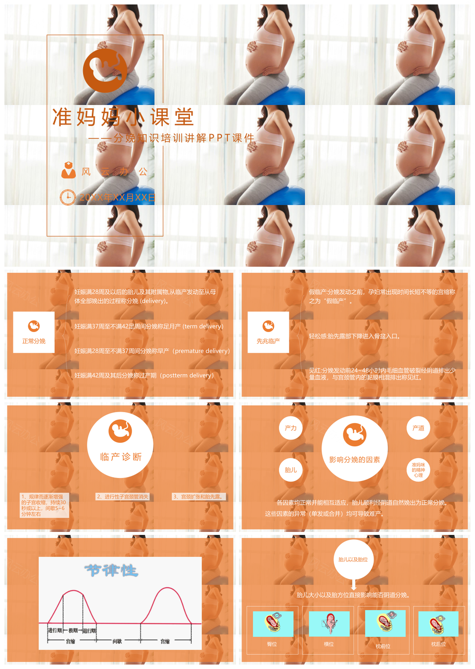 风云办公提供的产妇分娩知识培训讲解PPPPT模板,下载格式为pptx,一共1页,作品中文字及图均可以修改和编辑,图片更改请在作品中右键图片并更换,文字修改请直接点击文字进行修改。