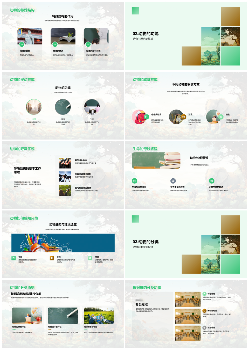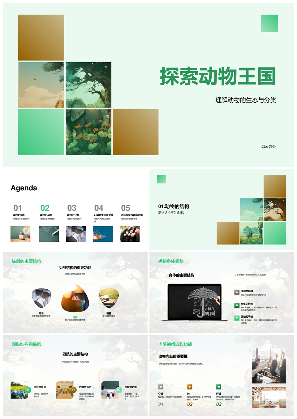 这是一张动物王国结构功能分类生态生长环境习性丛林保护PPT模板,包含动物王国、结构功能、分类、生态、生长环境、习性、丛林、保护等主题内容,也可用作动物王国结构功能分类、生态生长环境习性丛林保护、生态生长环境习性丛林、动物王国结构功能生态、环境习性丛林保护生态、动物王国分类生态生长、生长环境习性丛林保护、动物王国生态丛林保护、结构功能分类生态习性、生态生长丛林保护、动物王国环境习性、结构功能生态生长、分类生态生长环境、习性丛林保护、丛林保护生态等PPT场景使用。 风云办公提供的动物王国结构功能分类生态生长环境习性丛林保护PPT模板,下载格式为pptx,一共30页,作品中文字及图均可以修改和编辑,图片更改请在作品中右键图片并更换,文字修改请直接点击文字进行修改。