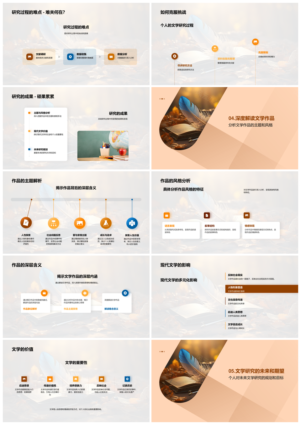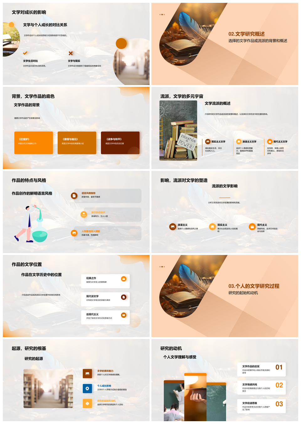 这是一张漫步文学研读经典美韵体悟开卷PPT模板,包含漫步、文学、研读、经典、美韵、体悟、开卷等主题内容,也可用作漫步文学研读经典、漫步文学研读、漫步研读经典、文学研读经典、研读经典美韵、经典美韵体悟、美韵体悟开卷、漫步文学、文学研读、研读经典、经典美韵、美韵体悟、体悟开卷、漫步研读、漫步经典等PPT场景使用。 风云办公提供的漫步文学研读经典美韵体悟开卷PPT模板,下载格式为pptx,一共33页,作品中文字及图均可以修改和编辑,图片更改请在作品中右键图片并更换,文字修改请直接点击文字进行修改。