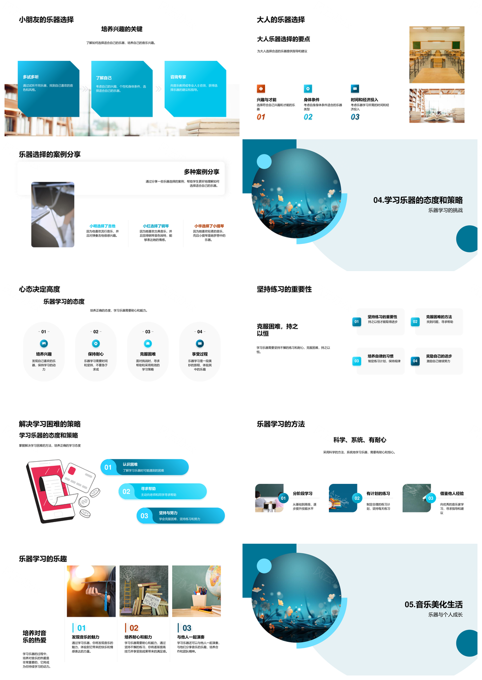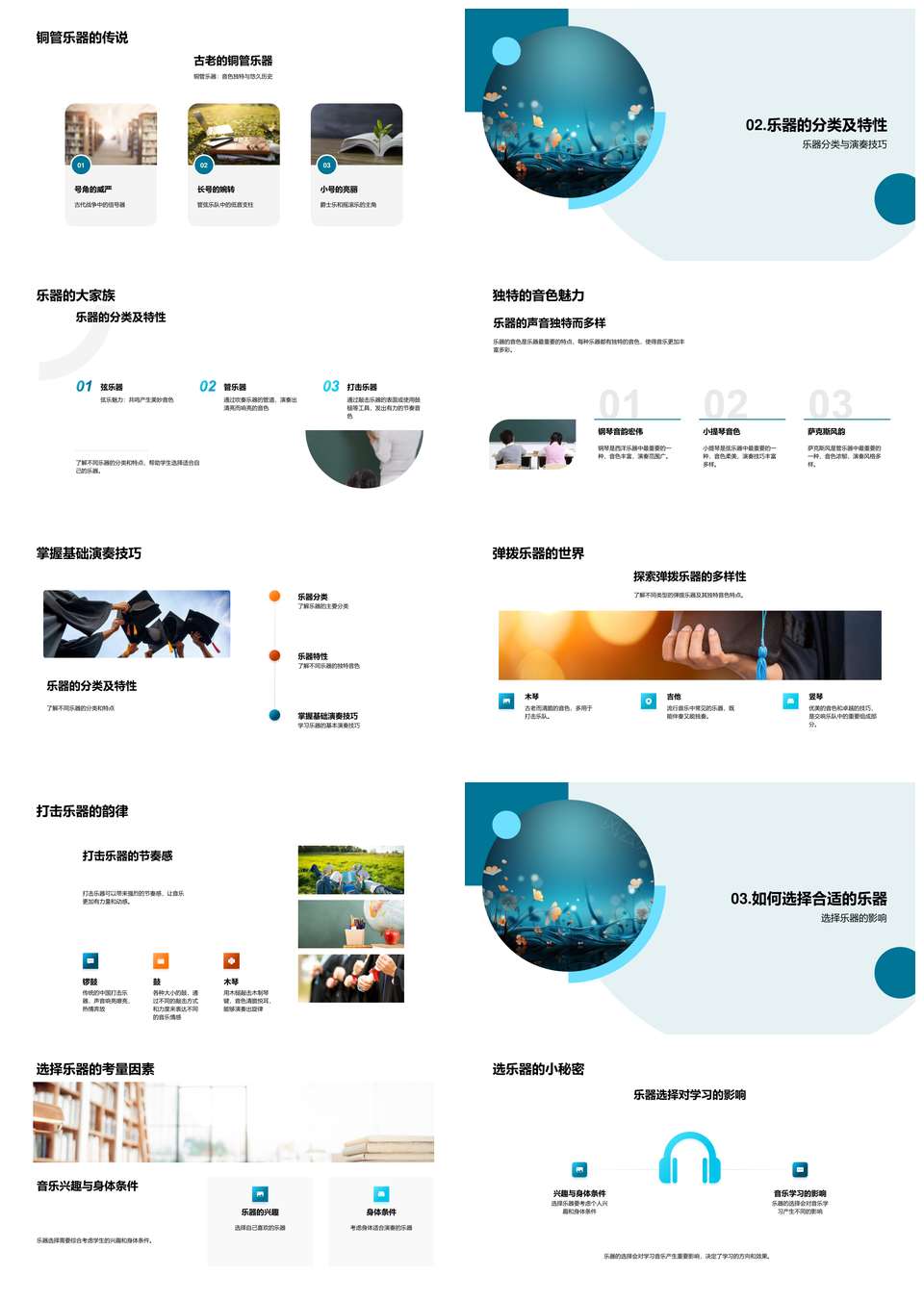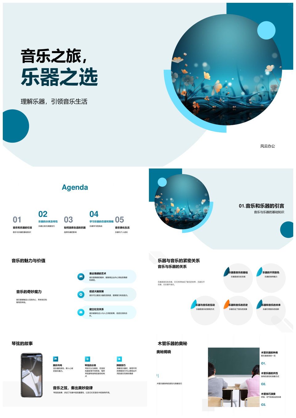 风云办公提供的音乐教育之旅乐器选择探音色练技巧PPT模板,下载格式为pptx,一共33页,作品中文字及图均可以修改和编辑,图片更改请在作品中右键图片并更换,文字修改请直接点击文字进行修改。