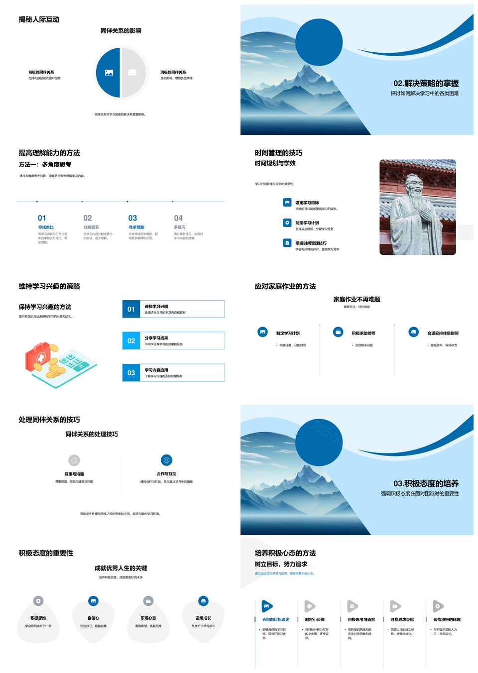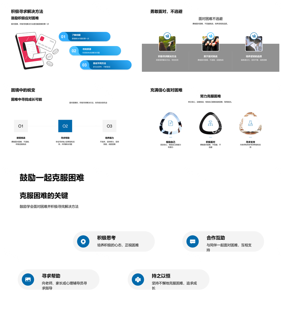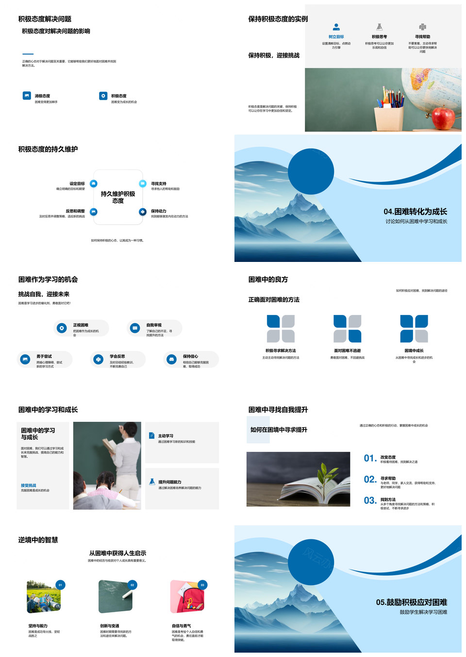 风云办公提供的挑战学习困难积极策略拥抱成长山峰PPT模板,下载格式为pptx,一共33页,作品中文字及图均可以修改和编辑,图片更改请在作品中右键图片并更换,文字修改请直接点击文字进行修改。