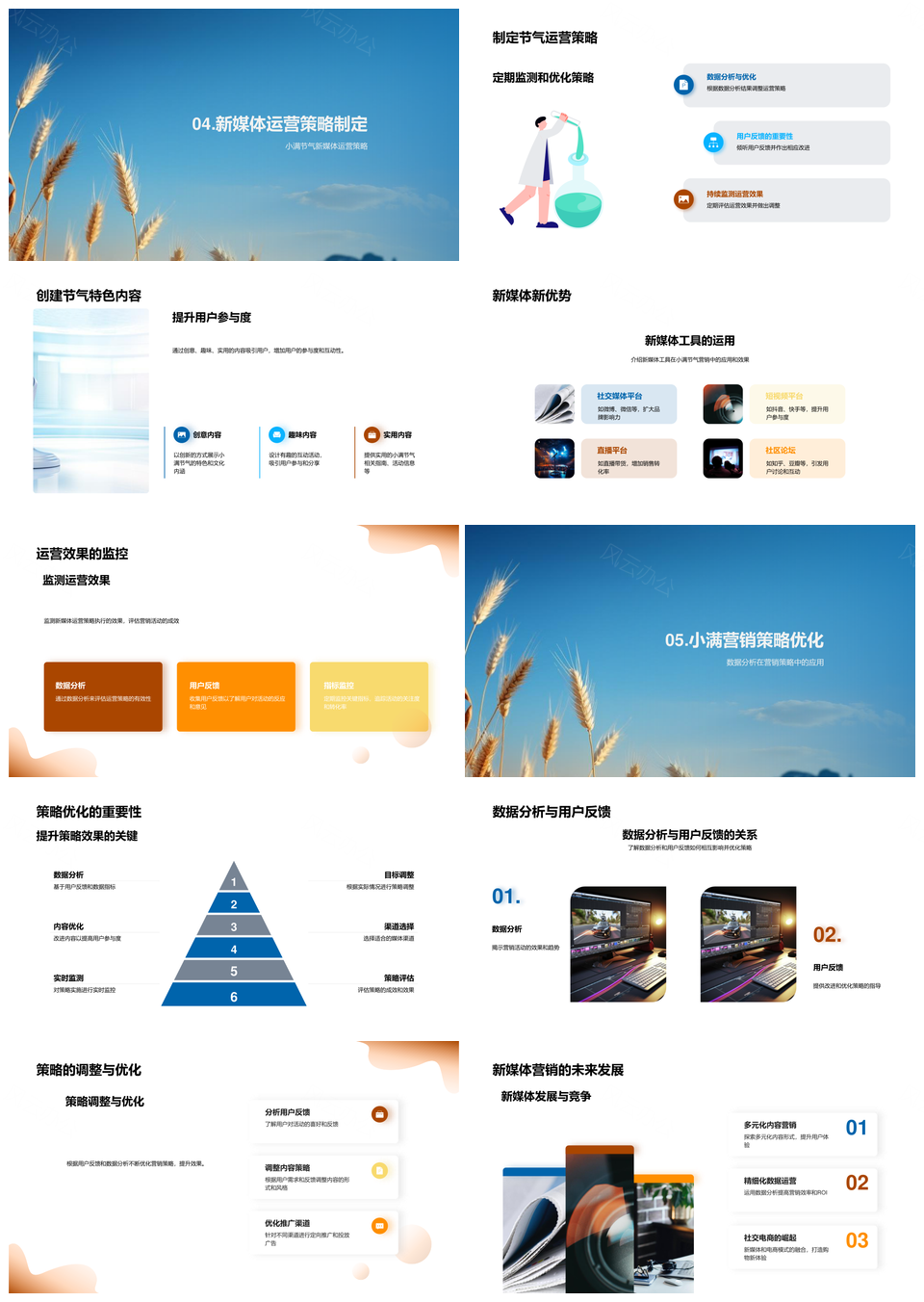 风云办公提供的新媒体小满节气麦穗营销数据驱动策略PPT模板,下载格式为pptx,一共28页,作品中文字及图均可以修改和编辑,图片更改请在作品中右键图片并更换,文字修改请直接点击文字进行修改。