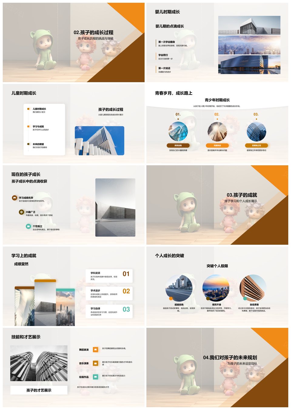 孩子成长历程家庭共进突破成就未来目标PPT模板