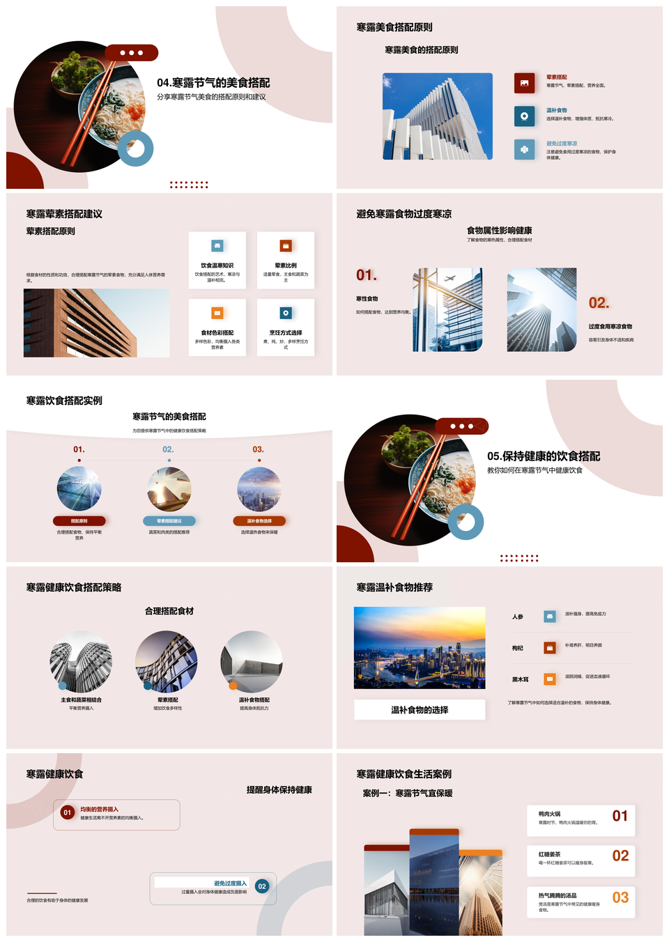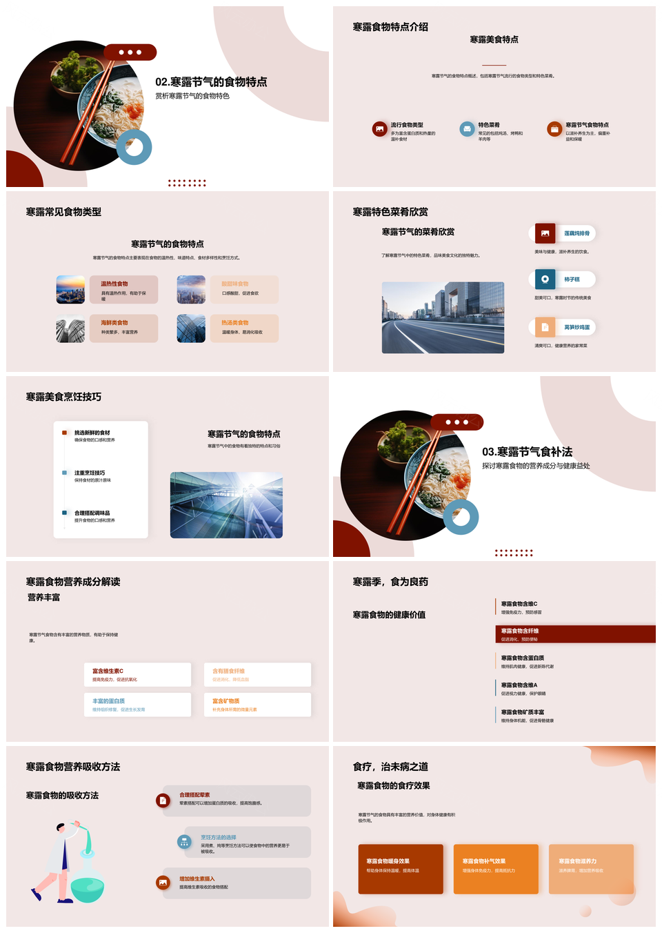 这是一张寒露节气健康美食营养食膳指南PPT模板,包含寒露、节气、健康、美食、营养、食膳、指南等主题内容,也可用作寒露节气健康美食、健康美食营养食膳、美食营养食膳指南、节气健康美食营养、健康美食营养指南、寒露健康营养食膳、节气健康营养食膳、寒露节气健康营养、健康营养食膳指南、营养食膳指南健康、寒露节气美食营养、寒露节气指南健康、寒露健康美食营养、健康美食食膳指南、寒露节气健康美食营养等PPT场景使用。