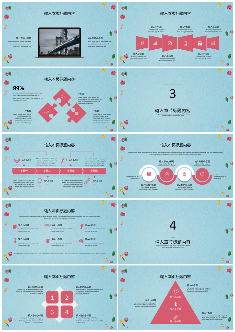 2025蓝色文艺小清新碎花商务PPT高质量模板