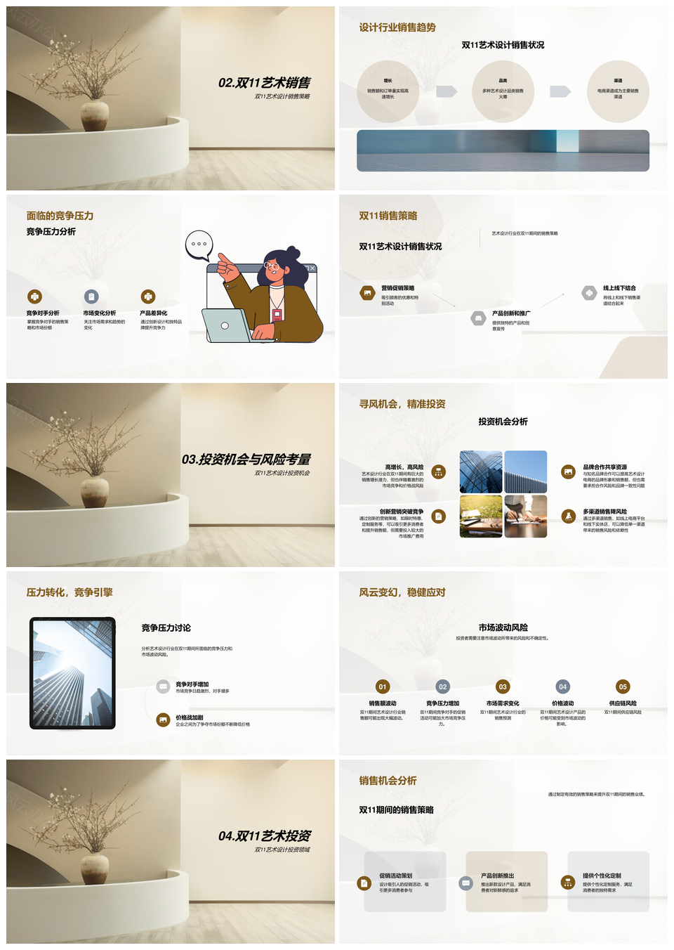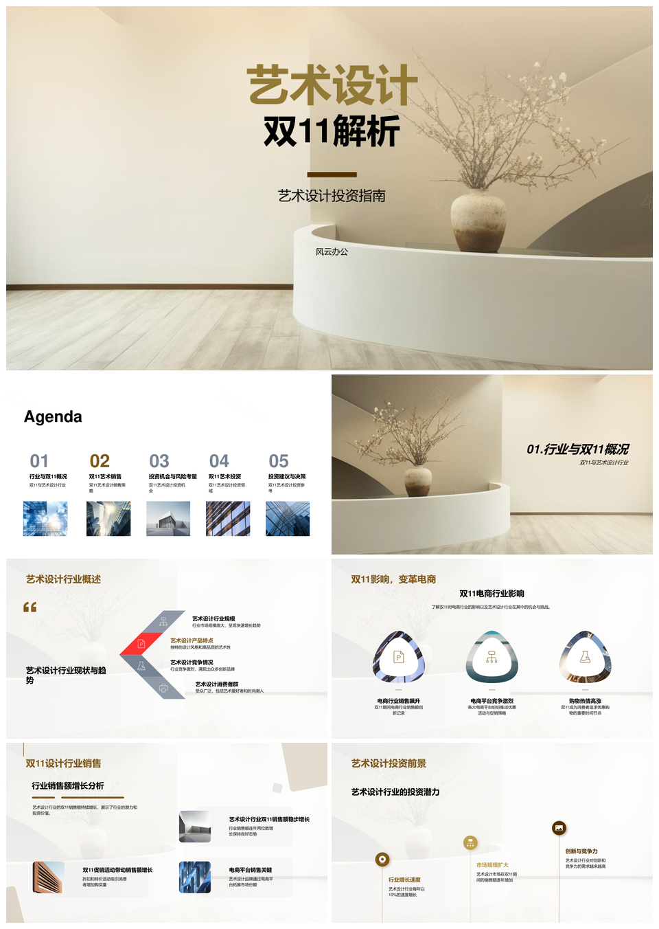 风云办公提供的双11艺术设计电商投资趋势竞争解析PPT模板,下载格式为pptx,一共23页,作品中文字及图均可以修改和编辑,图片更改请在作品中右键图片并更换,文字修改请直接点击文字进行修改。