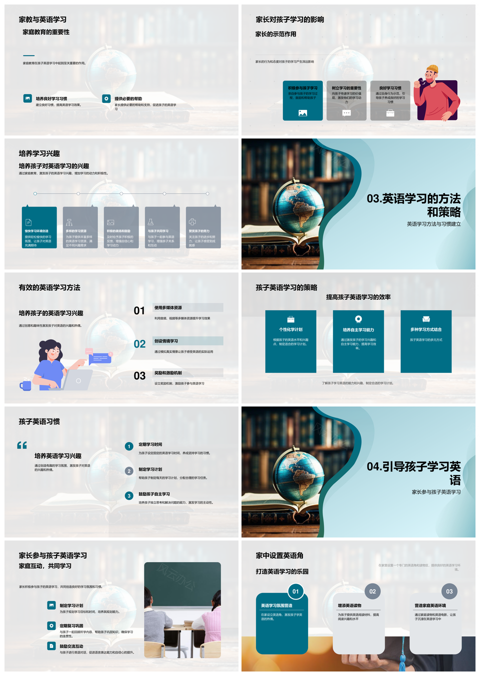 这是一张家庭英语教育攻克难点兴趣家长策略方法PPT模板,包含家庭、英语教育、攻克、难点、兴趣、家长、策略、方法等主题内容,也可用作家庭英语教育攻克难点、英语教育攻克难点兴趣、教育攻克难点兴趣家长、攻克难点兴趣家长策略、难点兴趣家长策略方法、家庭英语教育策略方法、英语教育攻克难点家长、教育难点兴趣家长策略、攻克难点家长策略方法、家庭英语教育兴趣家长、家庭英语攻克难点策略、教育兴趣家长策略方法、英语教育兴趣家长策略、家庭教育策略方法、攻克难点家长策略等PPT场景使用。 风云办公提供的家庭英语教育攻克难点兴趣家长策略方法PPT模板,下载格式为pptx,一共24页,作品中文字及图均可以修改和编辑,图片更改请在作品中右键图片并更换,文字修改请直接点击文字进行修改。