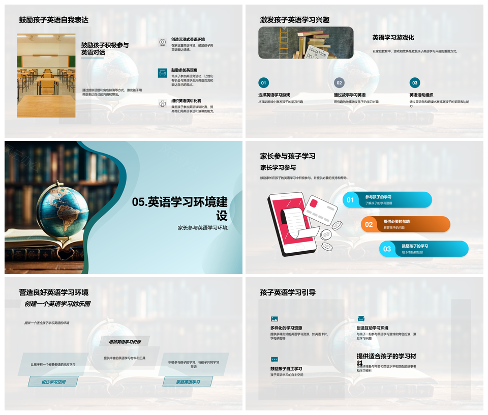 家庭英语教育攻克难点兴趣家长策略方法PPT模板推荐