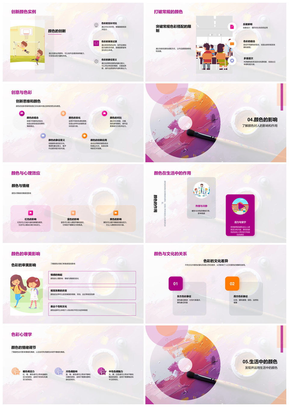 这是一张小学美术色彩应用搭配理论教学PPT模板,包含小学、美术、色彩、应用、搭配、理论、教学等主题内容,也可用作小学美术色彩应用、美术色彩应用搭配、色彩应用搭配理论、应用搭配理论教学、小学美术色彩、美术色彩应用、色彩应用搭配、应用搭配理论、搭配理论教学、小学美术、美术色彩、色彩应用、应用搭配、搭配理论、理论教学等PPT场景使用。