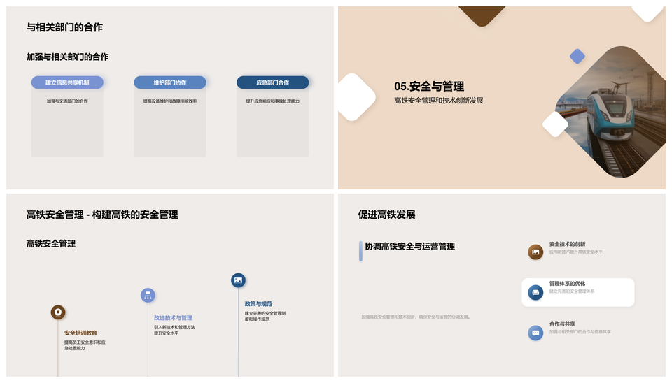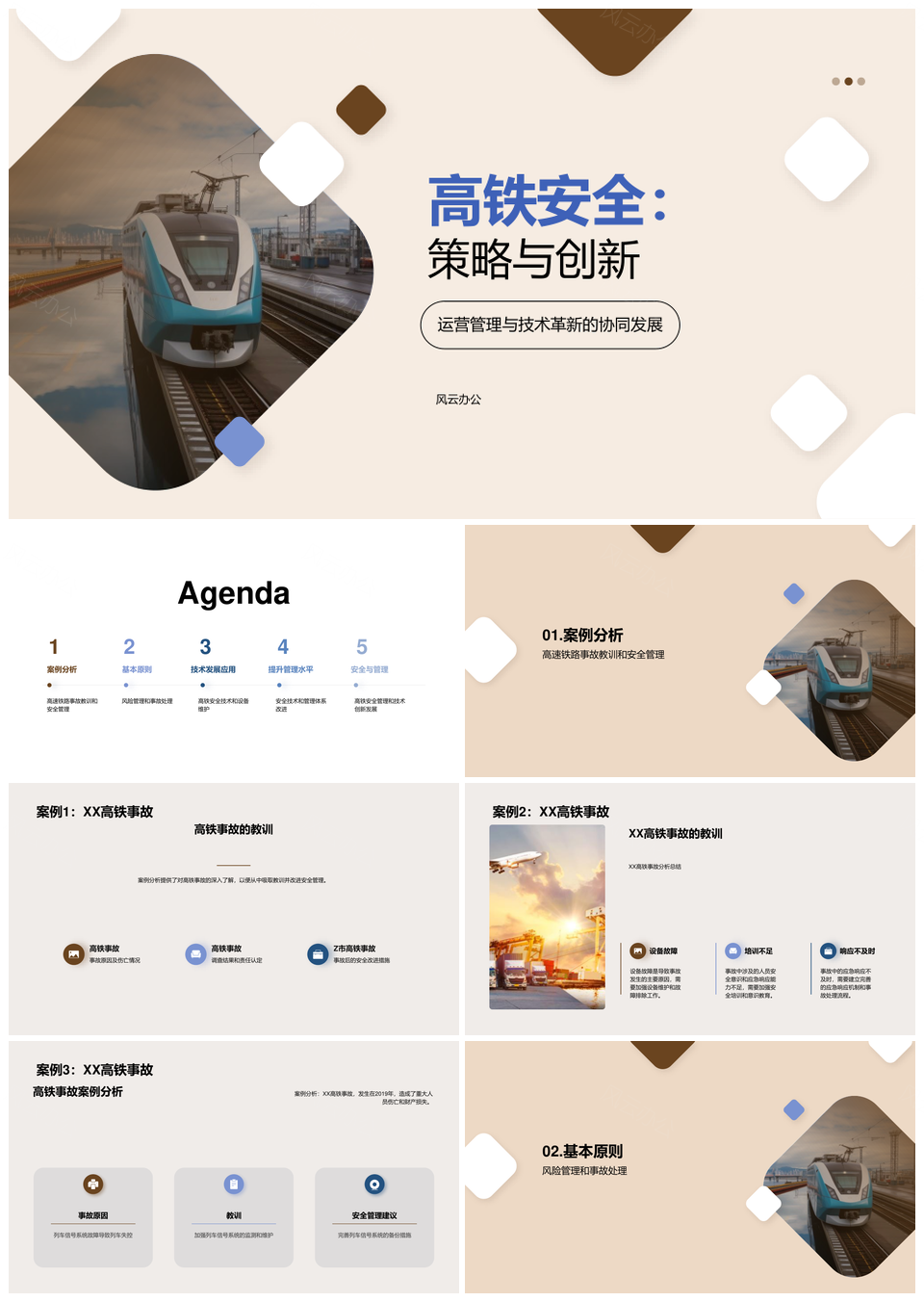 风云办公提供的高速铁路安全管理策略创新与案例分析PPT模板,下载格式为pptx,一共22页,作品中文字及图均可以修改和编辑,图片更改请在作品中右键图片并更换,文字修改请直接点击文字进行修改。