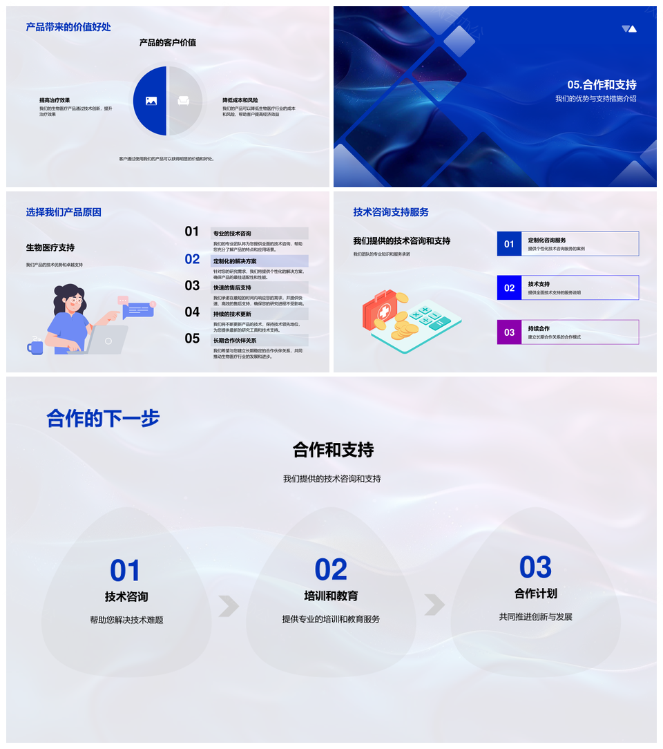 这是一张生物医疗产品技术优势应用创新对比反馈汇报PPT模板,包含生物医疗、产品、技术、优势、应用、创新、对比、反馈、汇报等主题内容,也可用作生物医疗产品技术优势应用、生物医疗产品技术优势、生物医疗产品技术、医疗产品技术优势应用、医疗产品技术优势、产品技术优势应用创新、技术优势应用创新对比、优势应用创新对比反馈、应用创新对比反馈汇报、应用创新对比反馈、创新对比反馈汇报、生物医疗产品、医疗产品技术、产品技术优势、技术优势应用等PPT场景使用。 风云办公提供的生物医疗产品技术优势应用创新对比反馈汇报PPT模板,下载格式为pptx,一共23页,作品中文字及图均可以修改和编辑,图片更改请在作品中右键图片并更换,文字修改请直接点击文字进行修改。