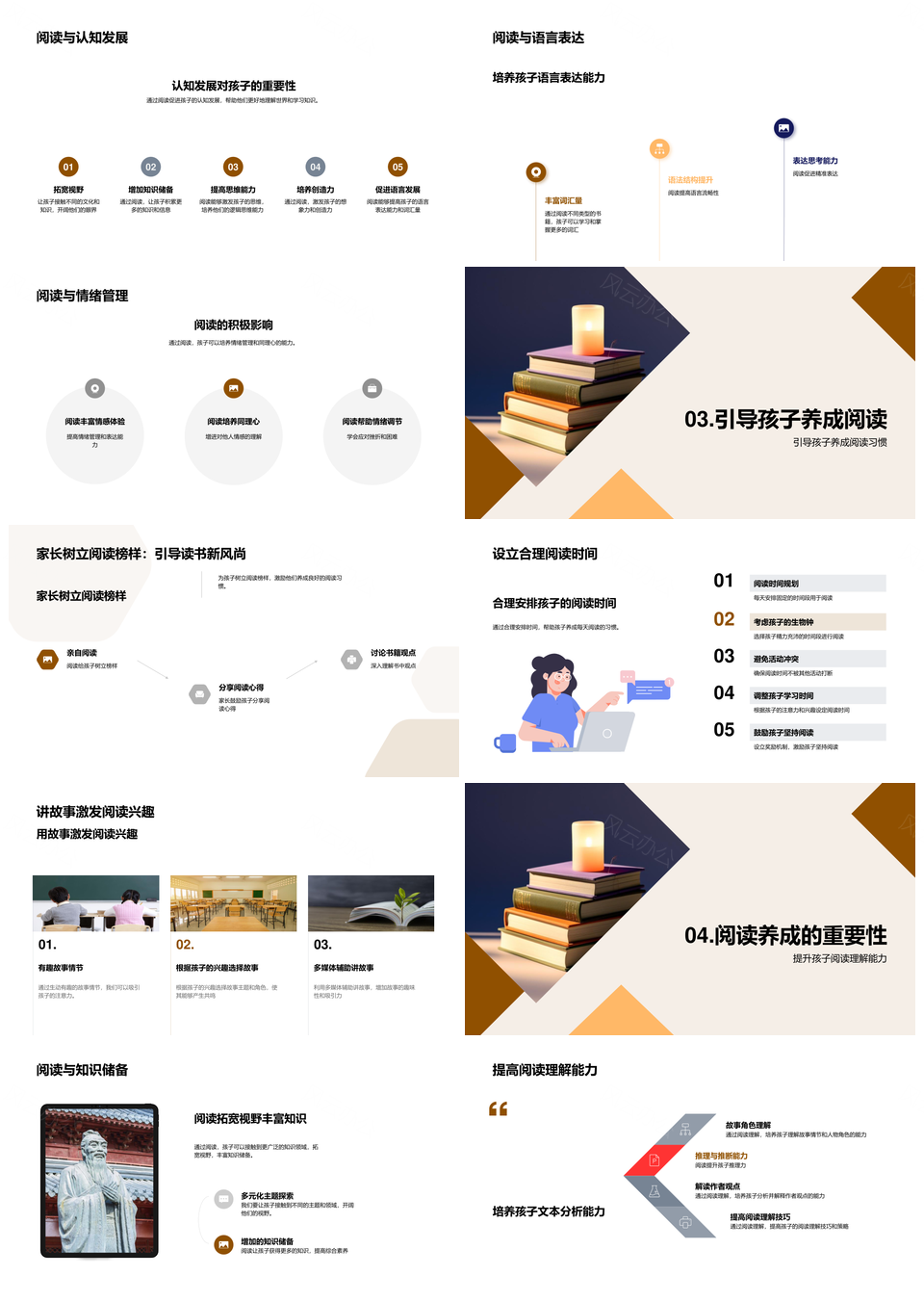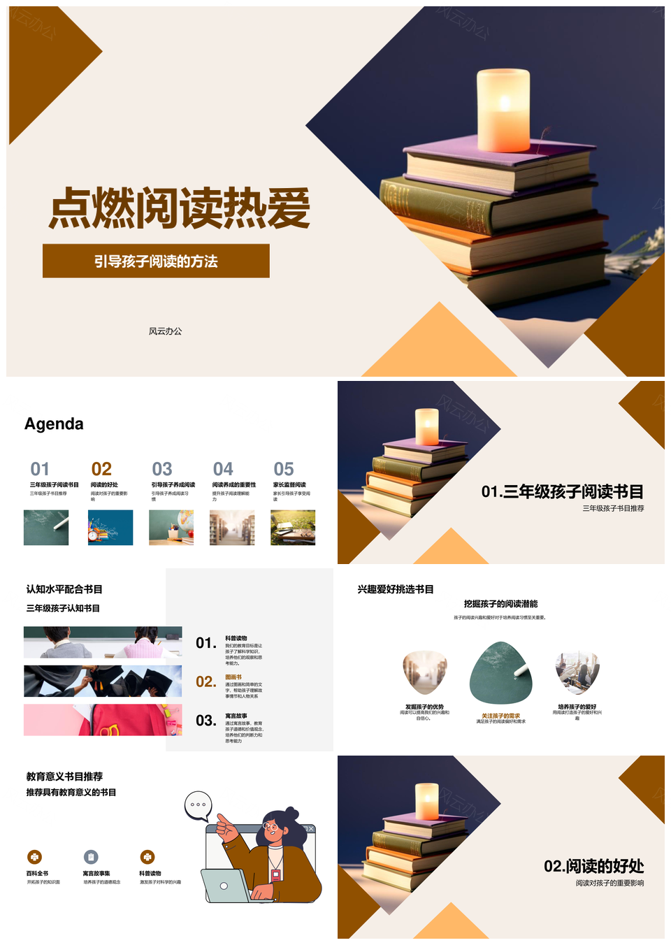 风云办公提供的点燃阅读热爱认知兴趣启智促成长PPT模板,下载格式为pptx,一共23页,作品中文字及图均可以修改和编辑,图片更改请在作品中右键图片并更换,文字修改请直接点击文字进行修改。