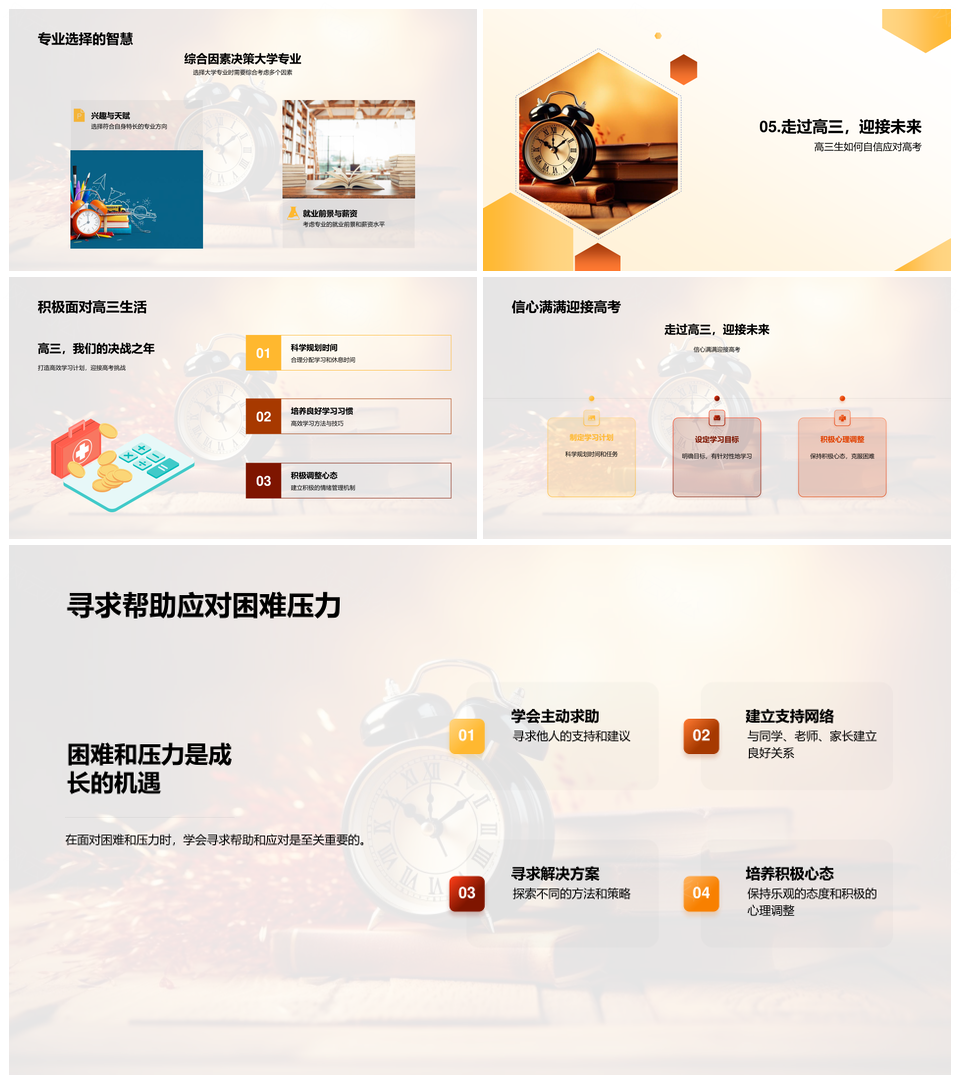 风云办公提供的高三备考策略与心理调整指南PPT模板,下载格式为pptx,一共23页,作品中文字及图均可以修改和编辑,图片更改请在作品中右键图片并更换,文字修改请直接点击文字进行修改。