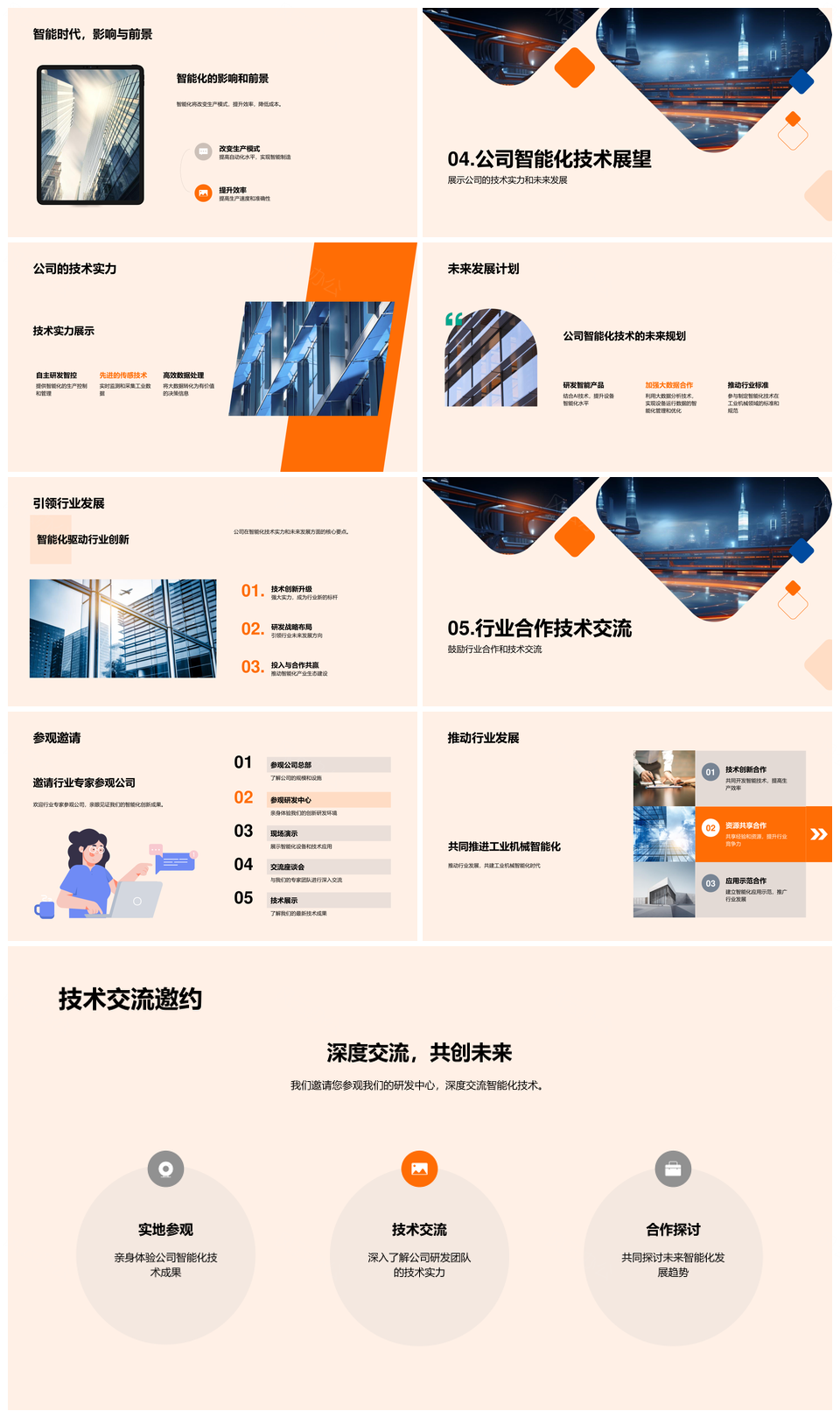 这款模板专为商务精英及科技从业者定制,融合工业风的硬朗结构与未来感的智能元素,兼顾专业与创新。主视觉采用橙蓝撞色方案,藏蓝与灰蓝奠定沉稳基调,浅蓝与天蓝增强层次,橙色点缀提升视觉活力;模块化版式支持多场景应用,从数据可视化到流程推演,均能高效传递核心信息。智能图表组件与极简图标库简化操作,矢量线条与渐变蒙版强化科技氛围,逻辑清晰的分栏布局确保内容易读性;适合产品发布会、技术提案及学术汇报场景,助力用严谨的视觉语言提升专业可信度。
