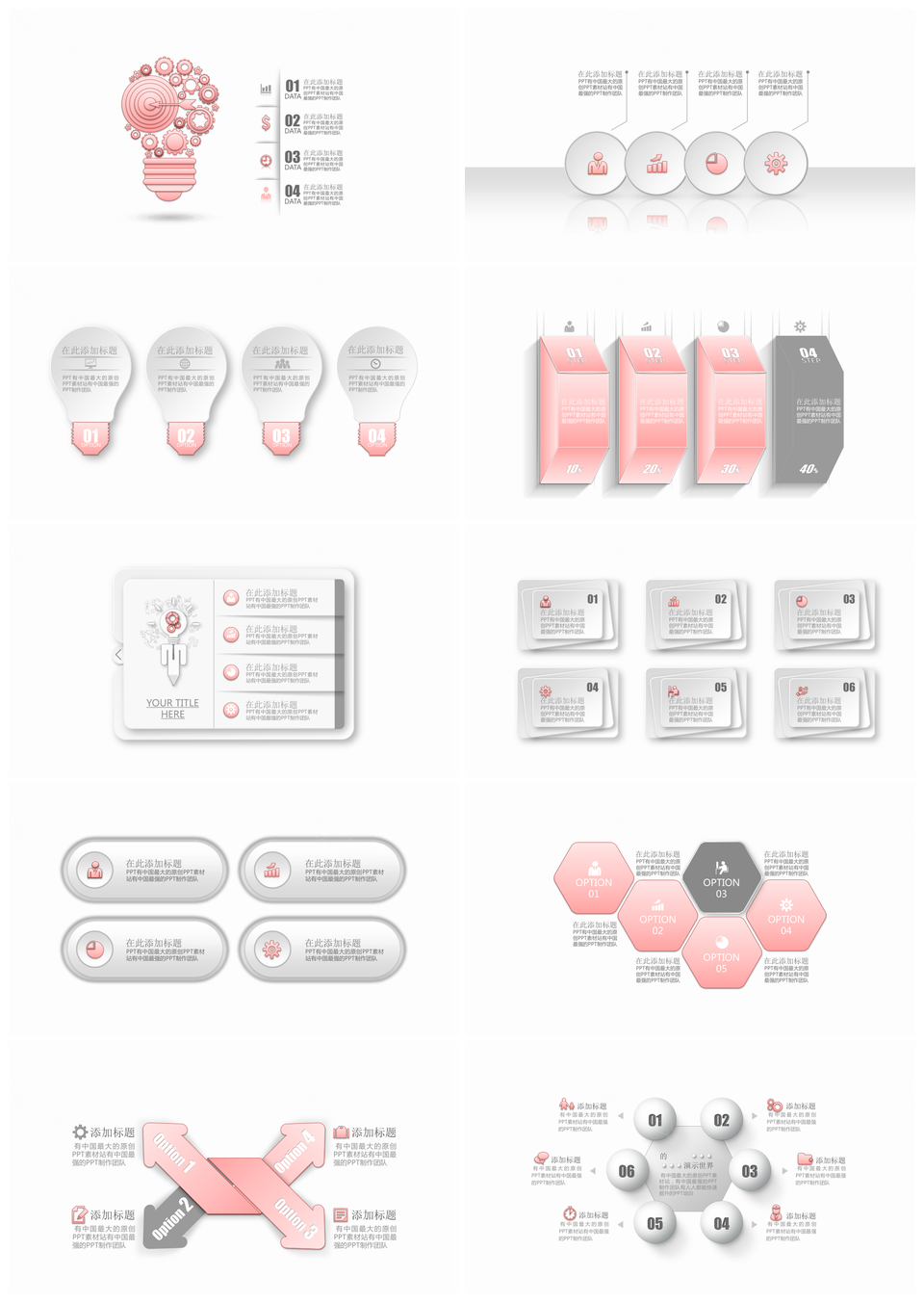 这是一张渐变粉色商务并列关系递进关系PPT图表合集,包含渐变粉色、商务、并列关系、递进关系、图表合集等主题内容,也可用作渐变、粉色、商务、并列关系、递进关系、PPT、图表、合集