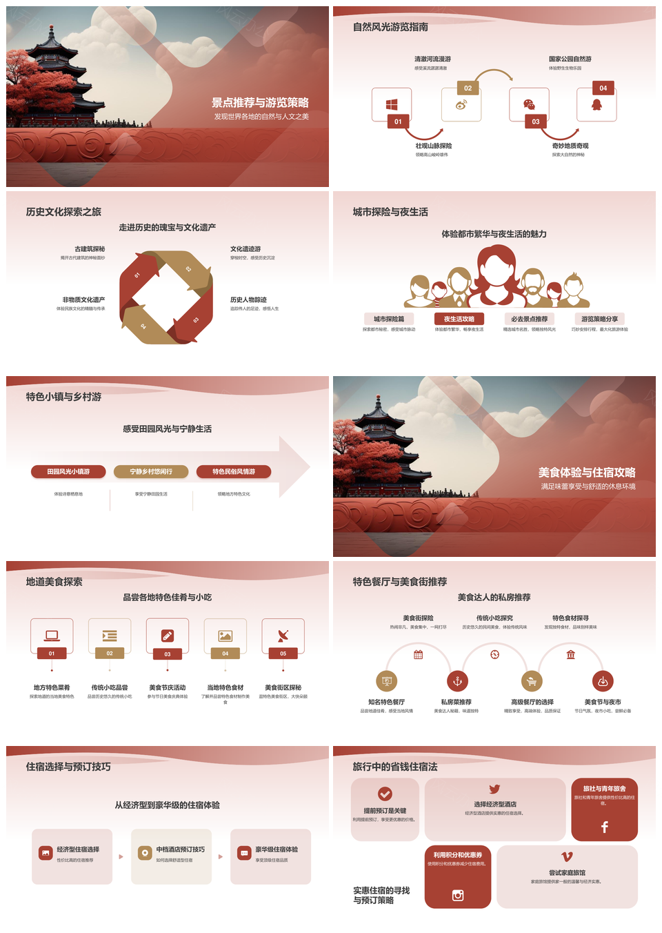 这是一张红色国风商务旅游营销攻略指南PPT模板,包含红色、国风、商务、旅游、营销、攻略、指南等主题内容,也可用作红色国风商务旅游、红色国风商务旅游营销、商务旅游营销攻略指南、红色国风商务旅游攻略、国风商务旅游营销攻略、旅游营销攻略指南、红色国风商务、红色国风商务旅游、红色商务旅游营销、国风商务旅游营销、商务旅游营销攻略、红色国风旅游、红色旅游营销攻略、国风旅游营销攻略、国风商务旅游等PPT场景使用。