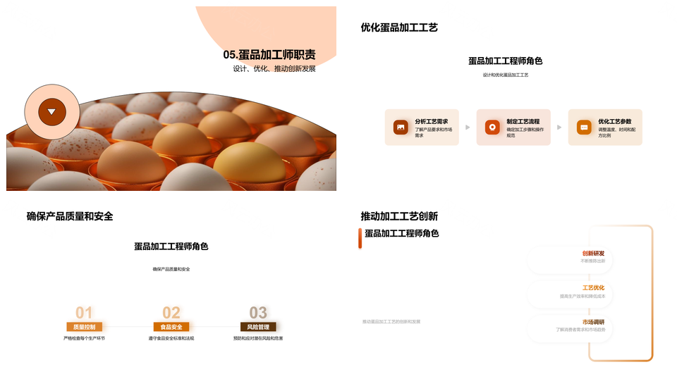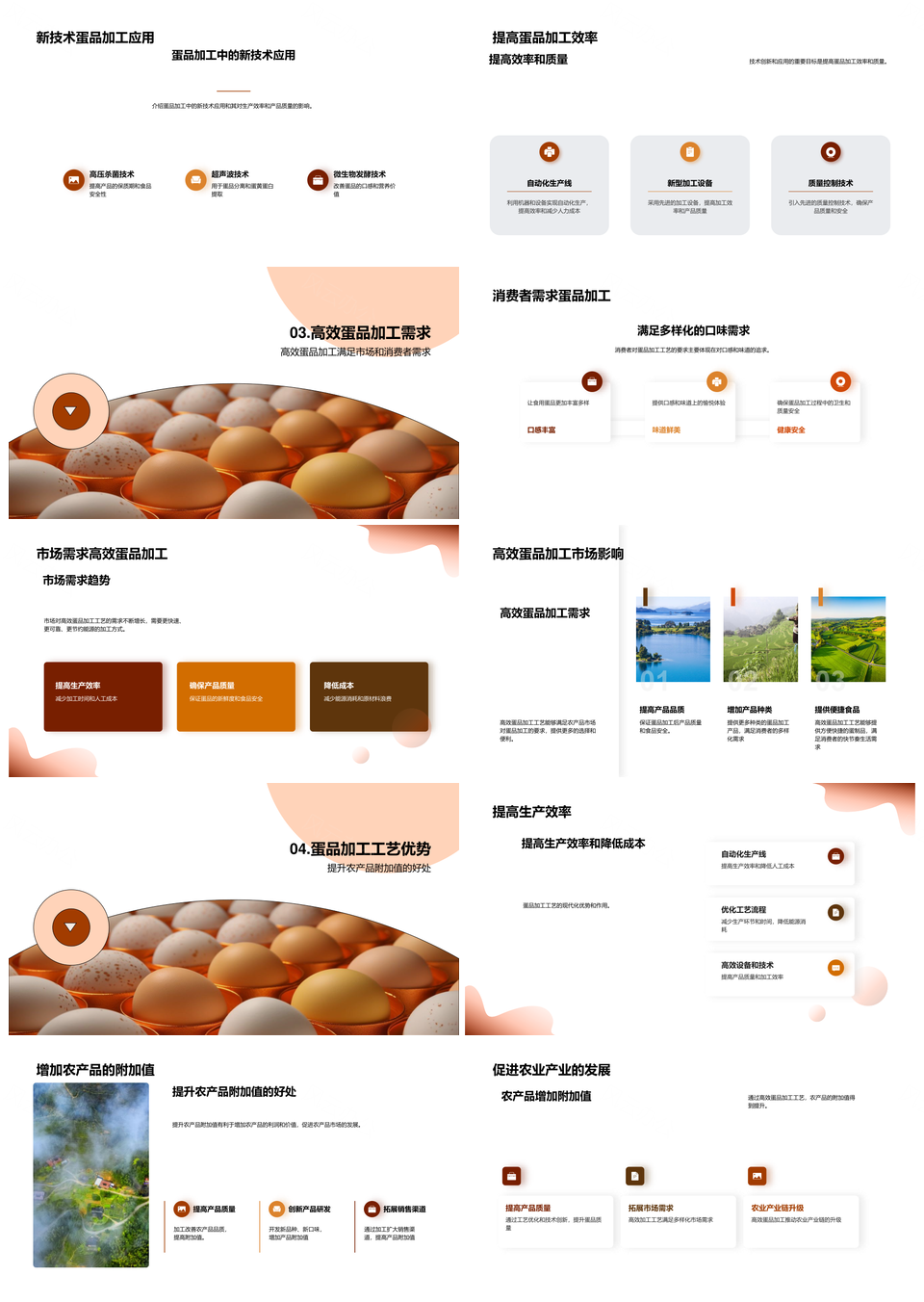 这是一张高效现代蛋品加工工艺设备创新PPT模板,包含高效、现代、蛋品、加工、工艺、设备、创新等主题内容,也可用作高效现代蛋品加工、现代蛋品加工工艺、蛋品加工工艺设备、加工工艺设备创新、高效现代蛋品、现代蛋品加工、蛋品加工工艺、加工工艺设备、工艺设备创新、高效蛋品加工、现代加工工艺、蛋品加工设备、加工设备创新、高效现代、加工工艺等PPT场景使用。