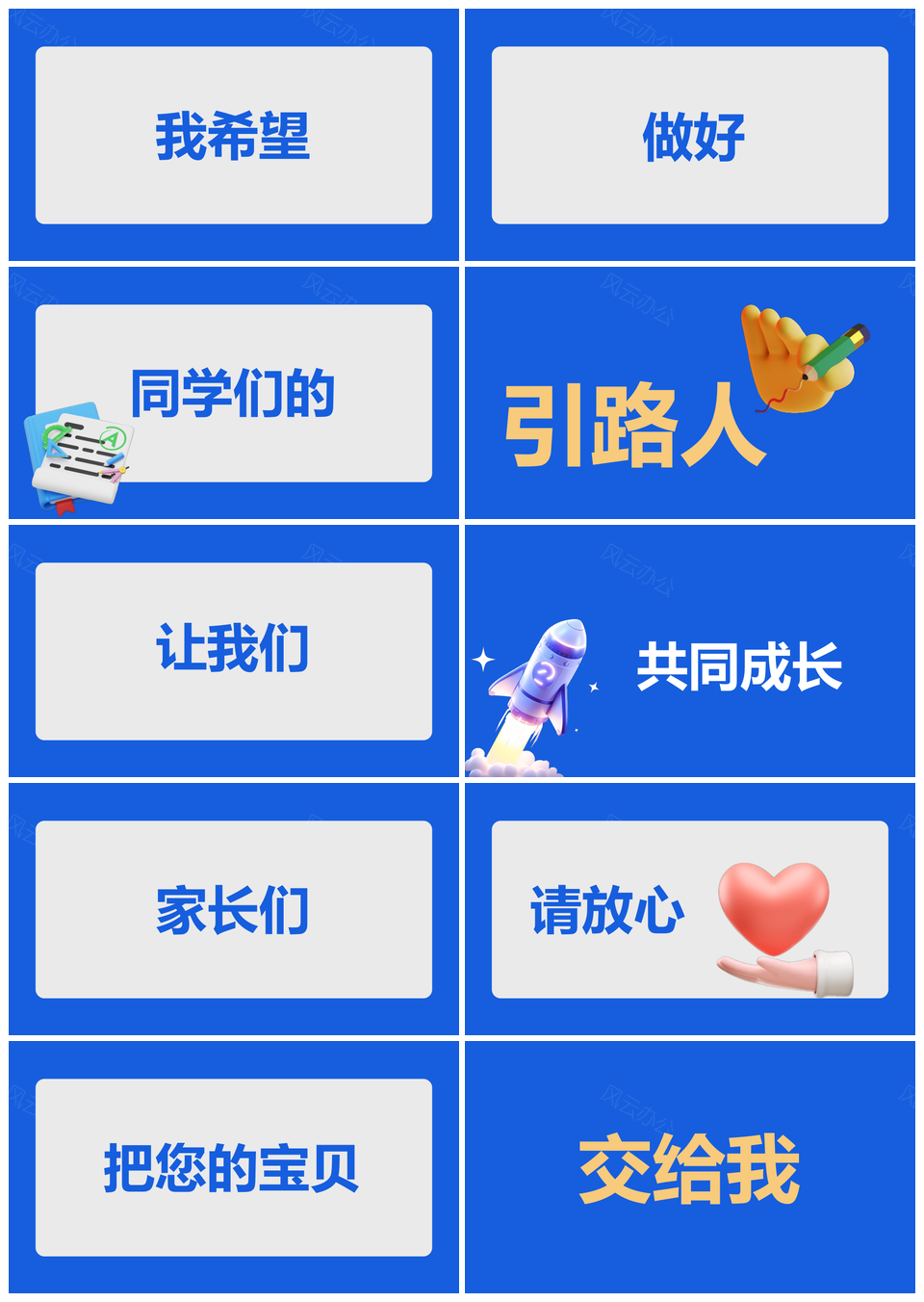 蓝色商务创意卡通教育课件自我介绍家长会通用PPT模板
