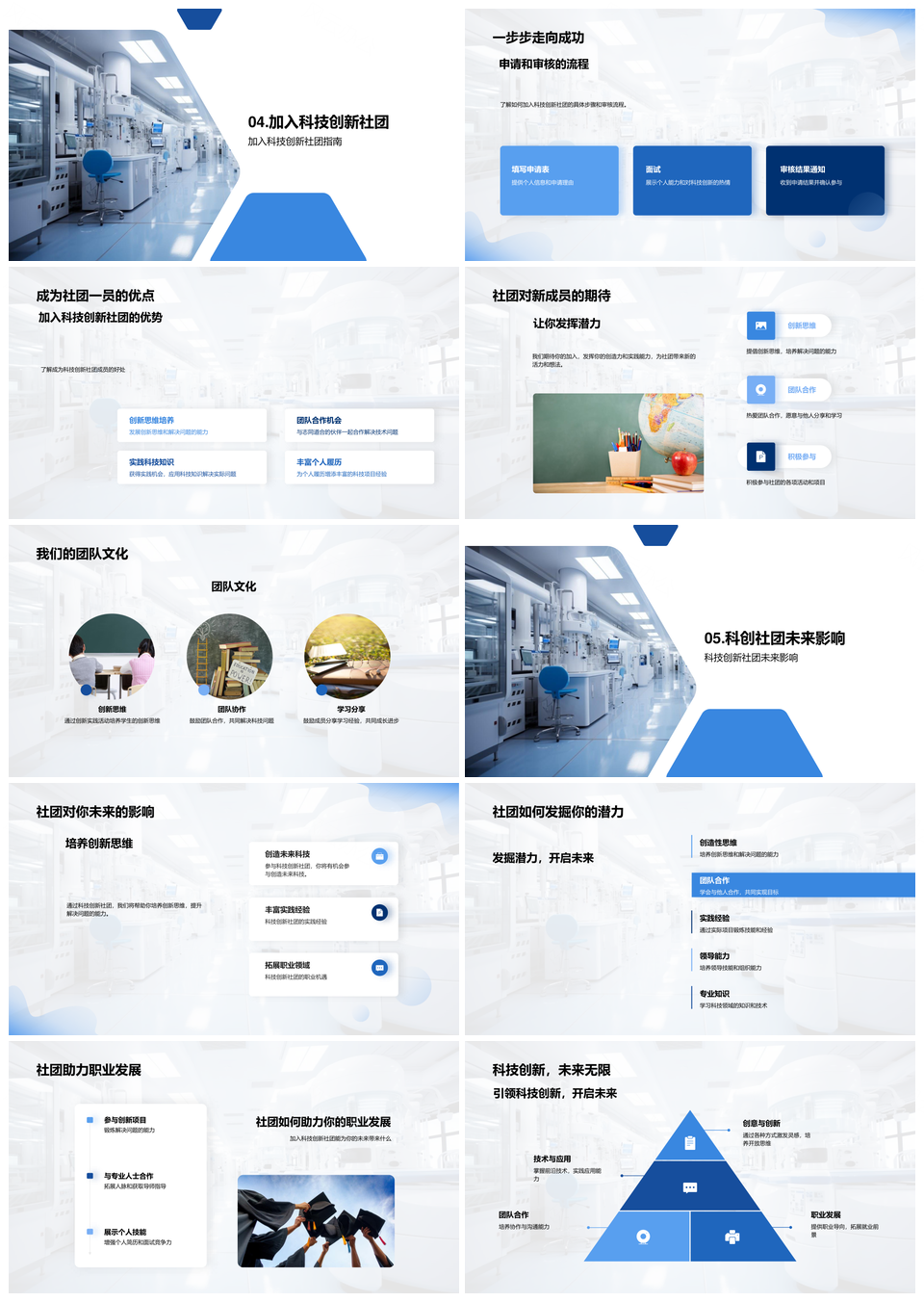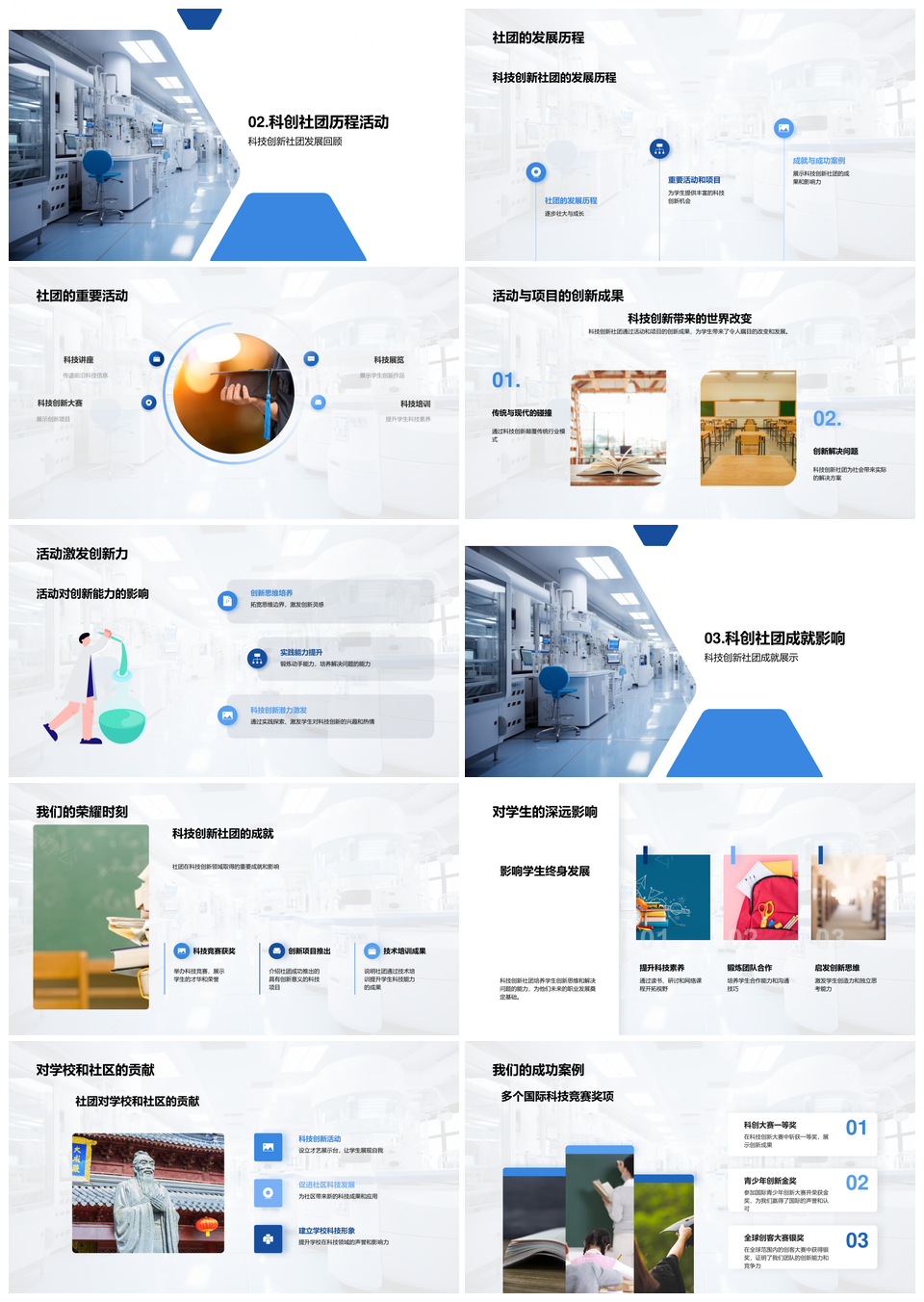 风云办公提供的科创社团创新科技探索历程PPT模板,下载格式为pptx,一共28页,作品中文字及图均可以修改和编辑,图片更改请在作品中右键图片并更换,文字修改请直接点击文字进行修改。
