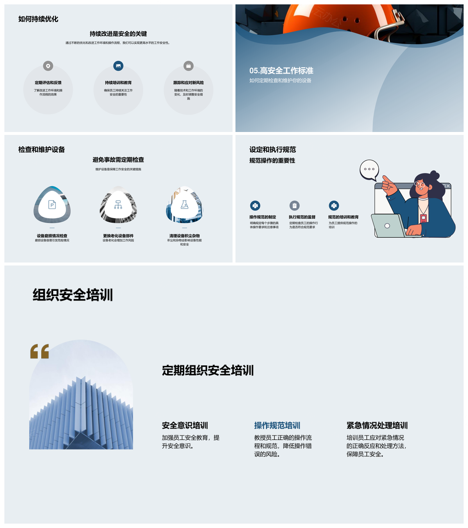 这是一张规范工业机械操作流程消除环境安全隐患PPT模板,包含规范、工业机械、操作流程、消除、环境、安全隐患等主题内容,也可用作规范工业机械操作流程、消除环境安全隐患、规范工业机械流程、规范工业机械安全、机械操作流程消除、消除环境安全、规范机械操作流程、工业机械操作流程、规范消除环境隐患、操作流程环境安全、环境安全隐患消除、流程消除安全隐患、机械操作环境安全、规范环境安全隐患、工业机械环境安全等PPT场景使用。 风云办公提供的规范工业机械操作流程消除环境安全隐患PPT模板,下载格式为pptx,一共23页,作品中文字及图均可以修改和编辑,图片更改请在作品中右键图片并更换,文字修改请直接点击文字进行修改。