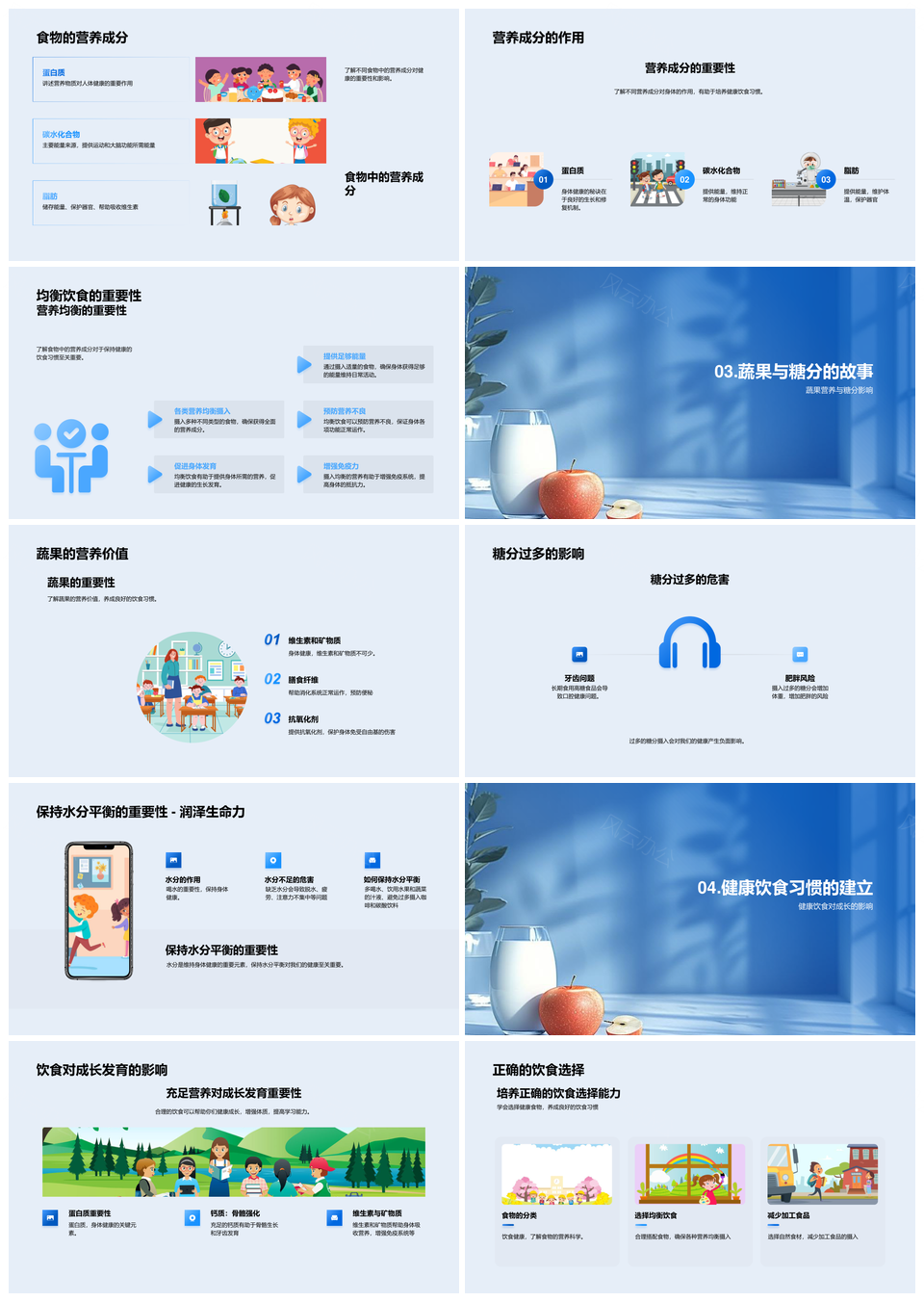 营养饮食课程健康均衡成分蔬果控糖补水PPT模板推荐