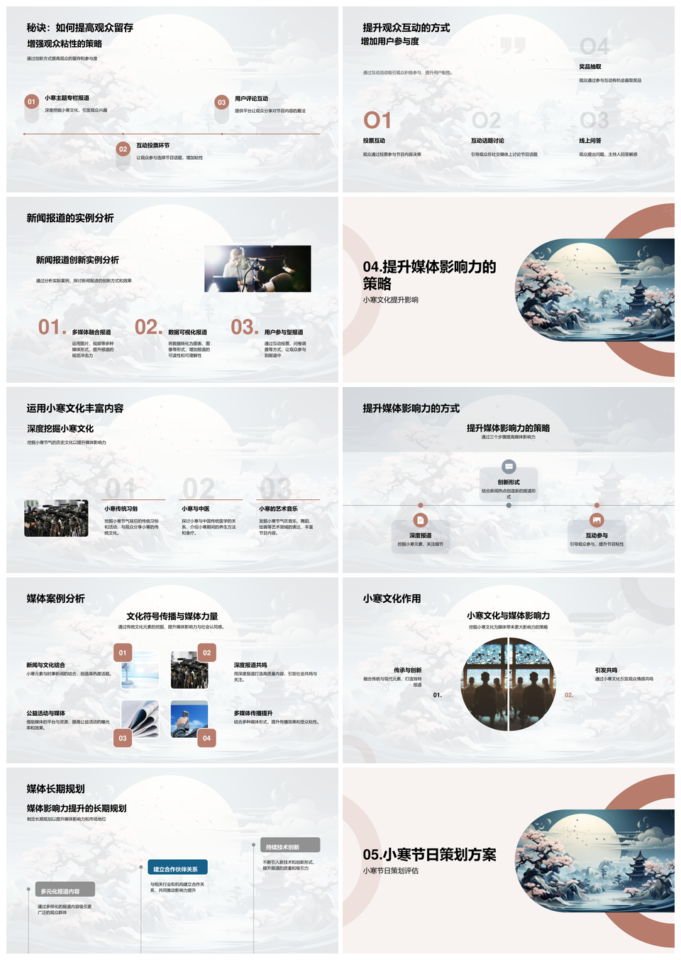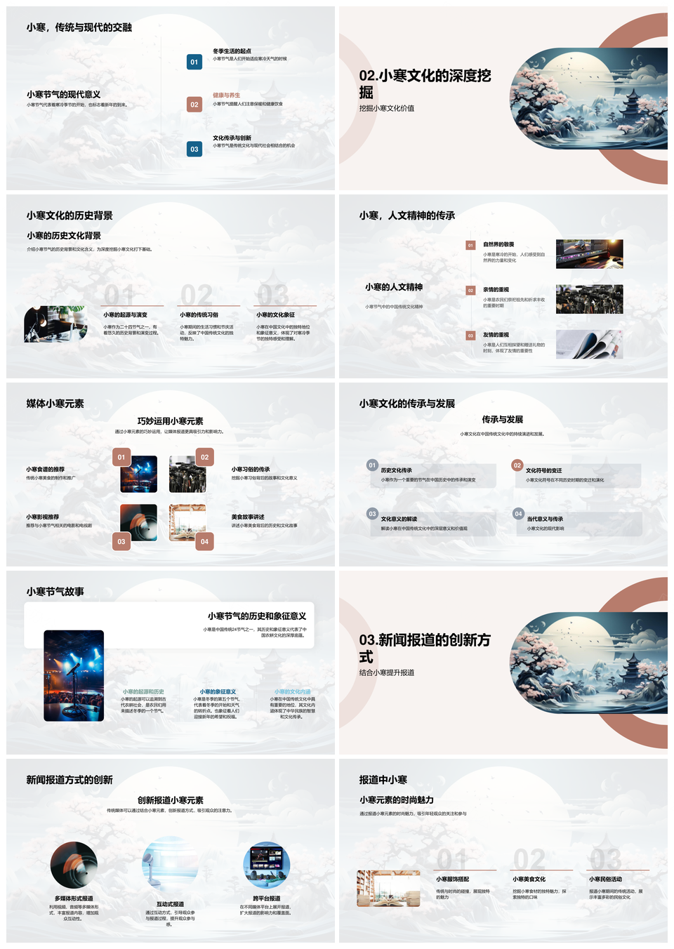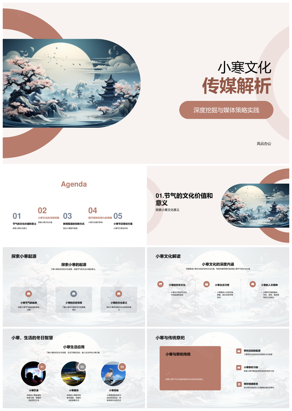 小寒文化传媒资深分析节气人文精神媒体策略古卷轴PPT模板推荐