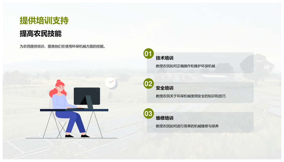 这是一张绿色农机可持续发展降污节能护土减排PPT模板,包含绿色农机、可持续发展、降污、节能、护土、减排等主题内容,也可用作绿色农机降污节能、降污节能护土减排、绿色农机可持续发展降污、可持续发展降污节能护土、绿色农机护土减排、农机可持续发展节能护土、可持续发展降污护土、农机降污节能护土、绿色农机节能护土、节能护土减排、降污护土减排、农机降污节能、绿色农机可持续发展、护土减排、降污节能减排等PPT场景使用。