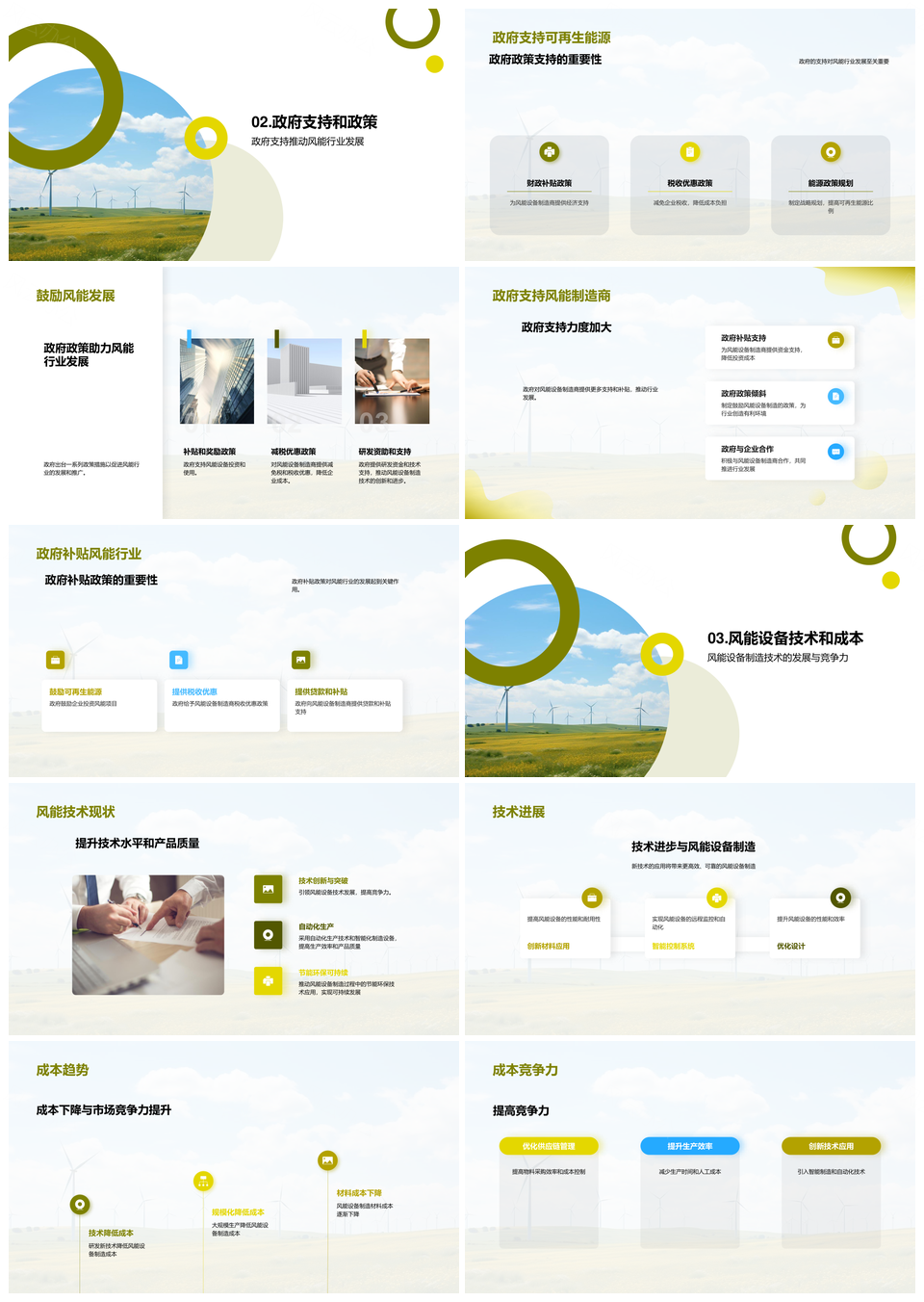 风能行业市场趋势政策支持设备技术成本解析PPT模板推荐
