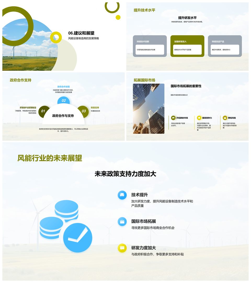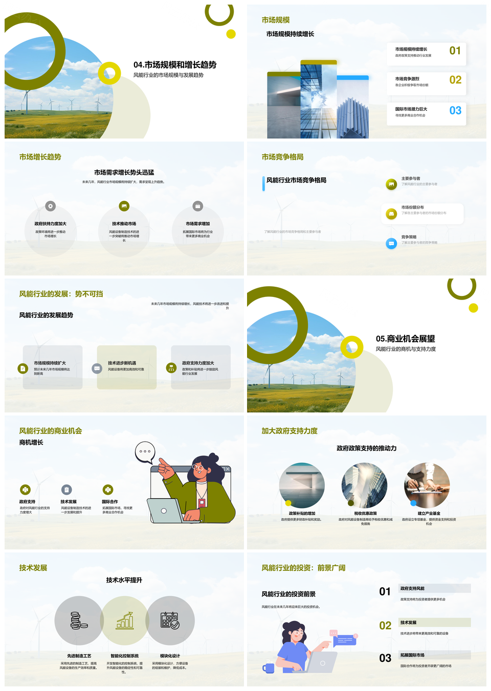 这是一张风能行业市场趋势政策支持设备技术成本解析PPT模板,包含风能行业、市场趋势、政策、支持、设备、技术、成本等主题内容,也可用作风能行业市场趋势政策支持、行业市场趋势政策支持设备、市场趋势政策支持设备技术、政策支持设备技术成本解析、风能行业市场趋势、行业市场趋势政策支持、市场趋势政策支持设备、政策支持设备技术、设备技术成本解析、风能行业、行业市场趋势、市场趋势政策支持、政策支持设备、设备技术、技术成本解析等PPT场景使用。 风云办公提供的风能行业市场趋势政策支持设备技术成本解析PPT模板,下载格式为pptx,一共33页,作品中文字及图均可以修改和编辑,图片更改请在作品中右键图片并更换,文字修改请直接点击文字进行修改。