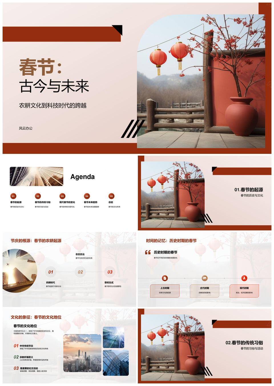 风云办公提供的春节农耕文化到科技时代演变PPT模板,下载格式为pptx,一共23页,作品中文字及图均可以修改和编辑,图片更改请在作品中右键图片并更换,文字修改请直接点击文字进行修改。