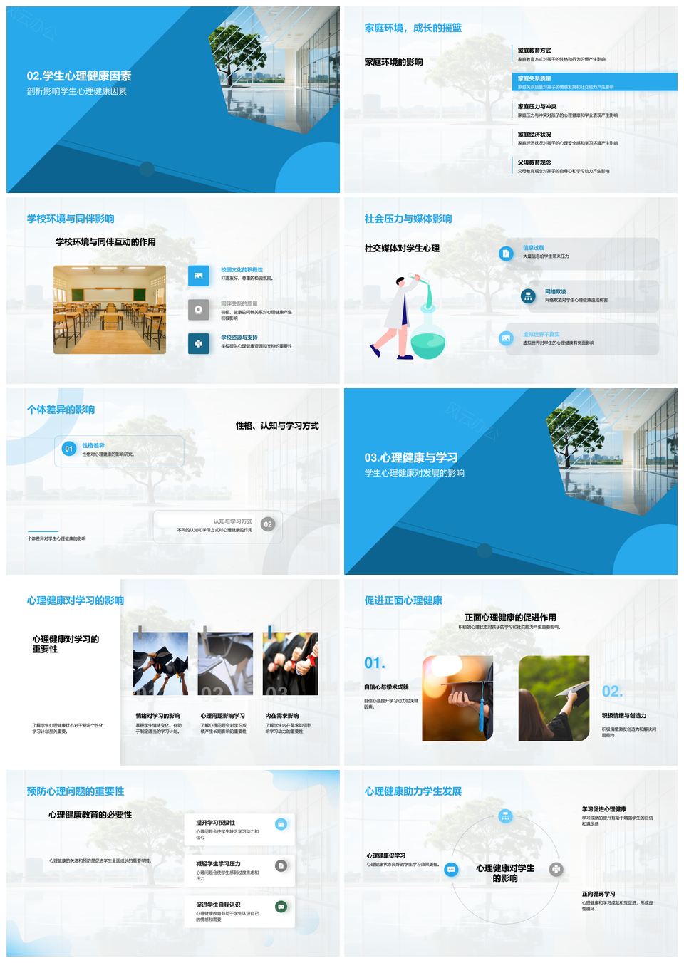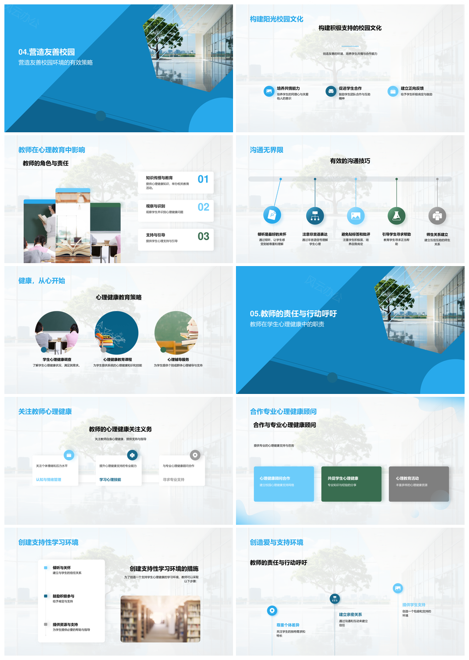 风云办公提供的师生心理健康教育共筑抗压校园PPT模板,下载格式为pptx,一共28页,作品中文字及图均可以修改和编辑,图片更改请在作品中右键图片并更换,文字修改请直接点击文字进行修改。