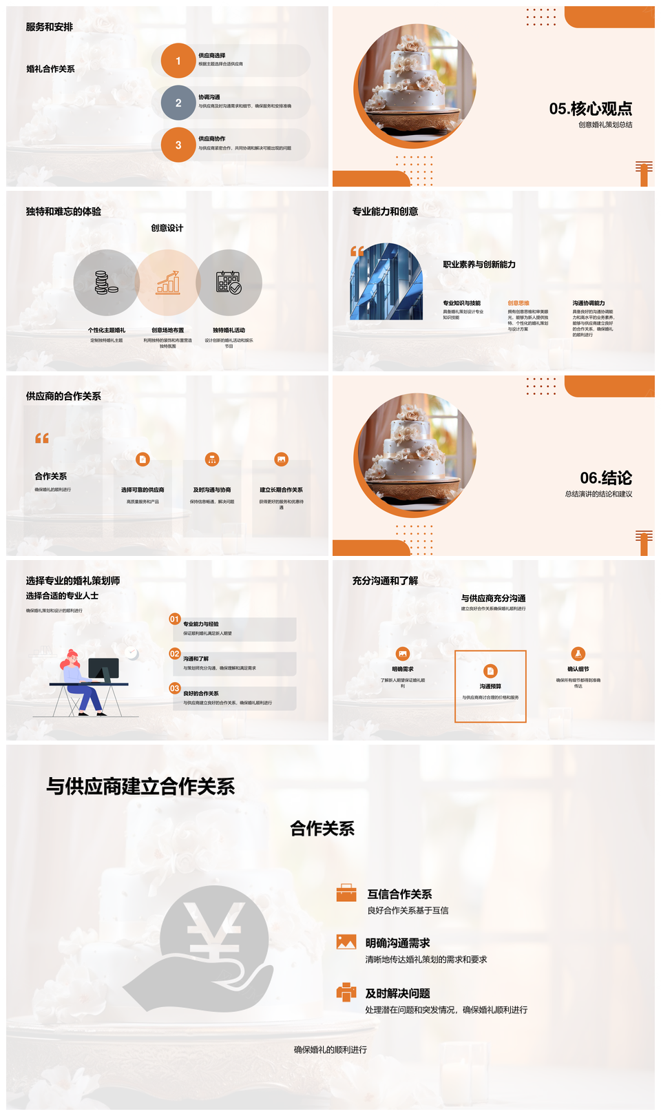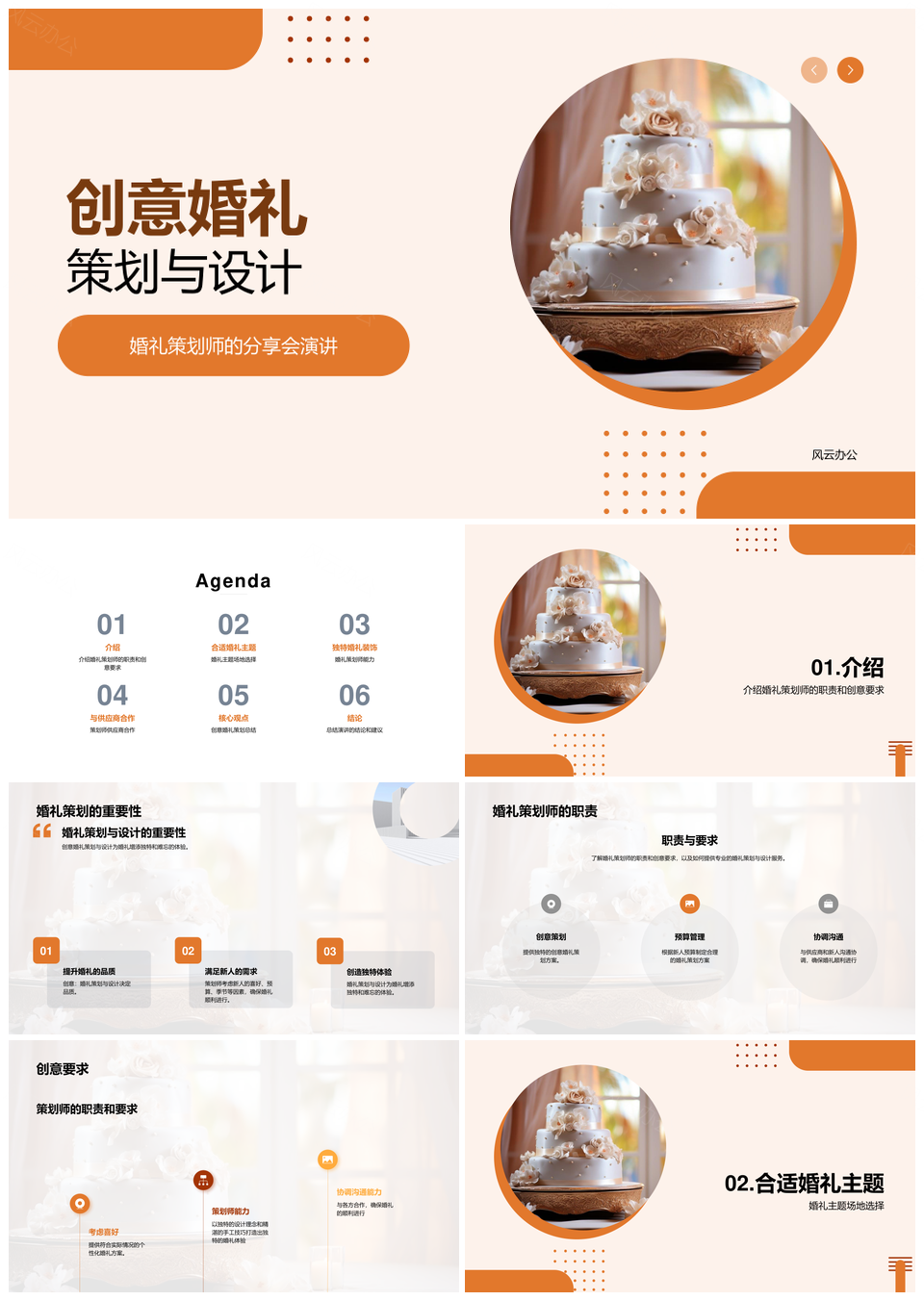 创意婚礼策划师设计新人预算季节审美蛋糕PPT模板