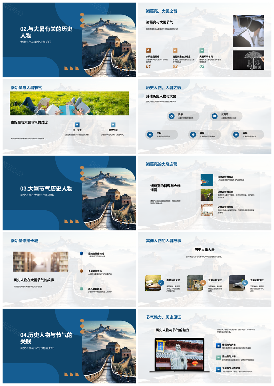 这是一张大暑史话诸葛亮秦始皇火烧连营长城关联卷轴PPT模板,包含大暑、史话、诸葛亮、秦始皇、火烧连营、长城、关联卷轴等主题内容,也可用作大暑史话诸葛亮秦始皇、火烧连营长城关联卷轴、史话诸葛亮火烧连营、诸葛亮秦始皇长城卷轴、大暑史话火烧连营、秦始皇长城关联卷轴、史话长城关联卷轴、火烧连营关联卷轴、大暑诸葛亮秦始皇、史话秦始皇长城、诸葛亮火烧连营、秦始皇火烧连营、大暑长城卷轴、史话关联卷轴、火烧连营长城等PPT场景使用。 风云办公提供的大暑史话诸葛亮秦始皇火烧连营长城关联卷轴PPT模板,下载格式为pptx,一共24页,作品中文字及图均可以修改和编辑,图片更改请在作品中右键图片并更换,文字修改请直接点击文字进行修改。