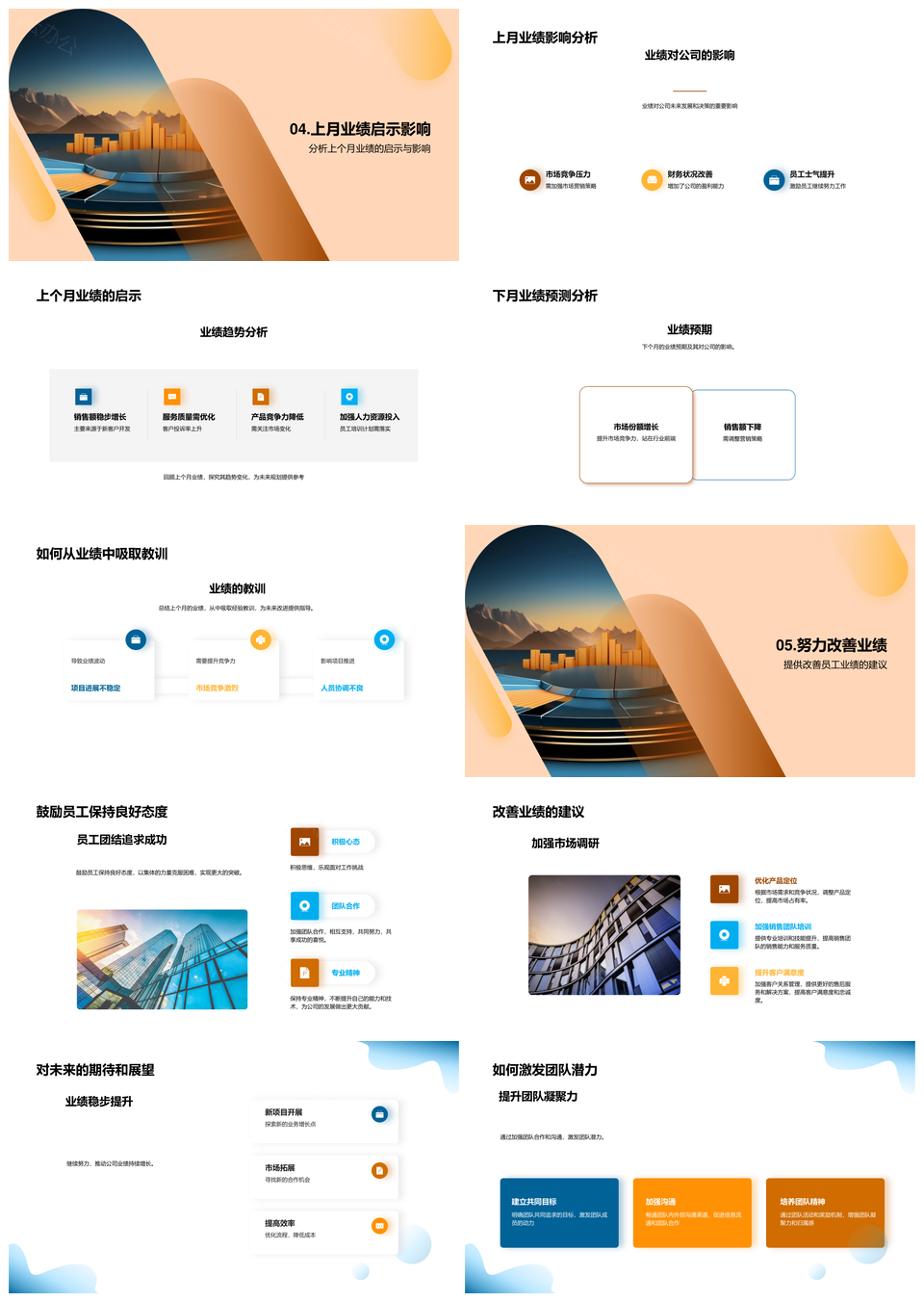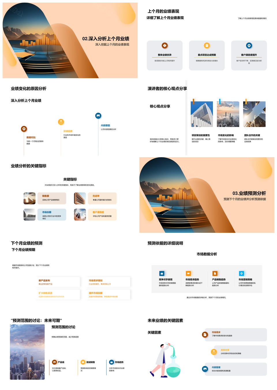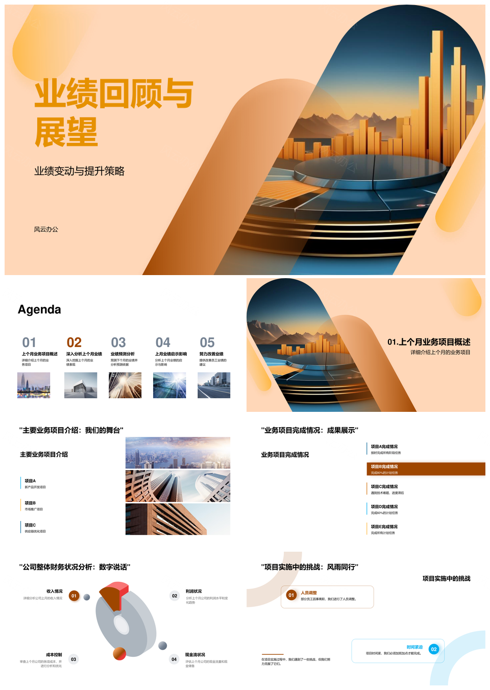 风云办公提供的上月业绩回顾下月预测及业务改善建议PPT模板,下载格式为pptx,一共28页,作品中文字及图均可以修改和编辑,图片更改请在作品中右键图片并更换,文字修改请直接点击文字进行修改。