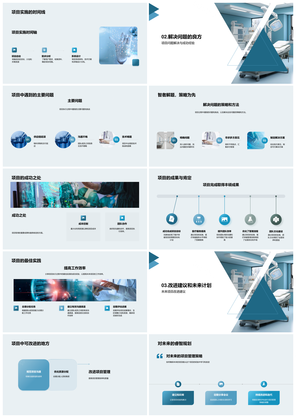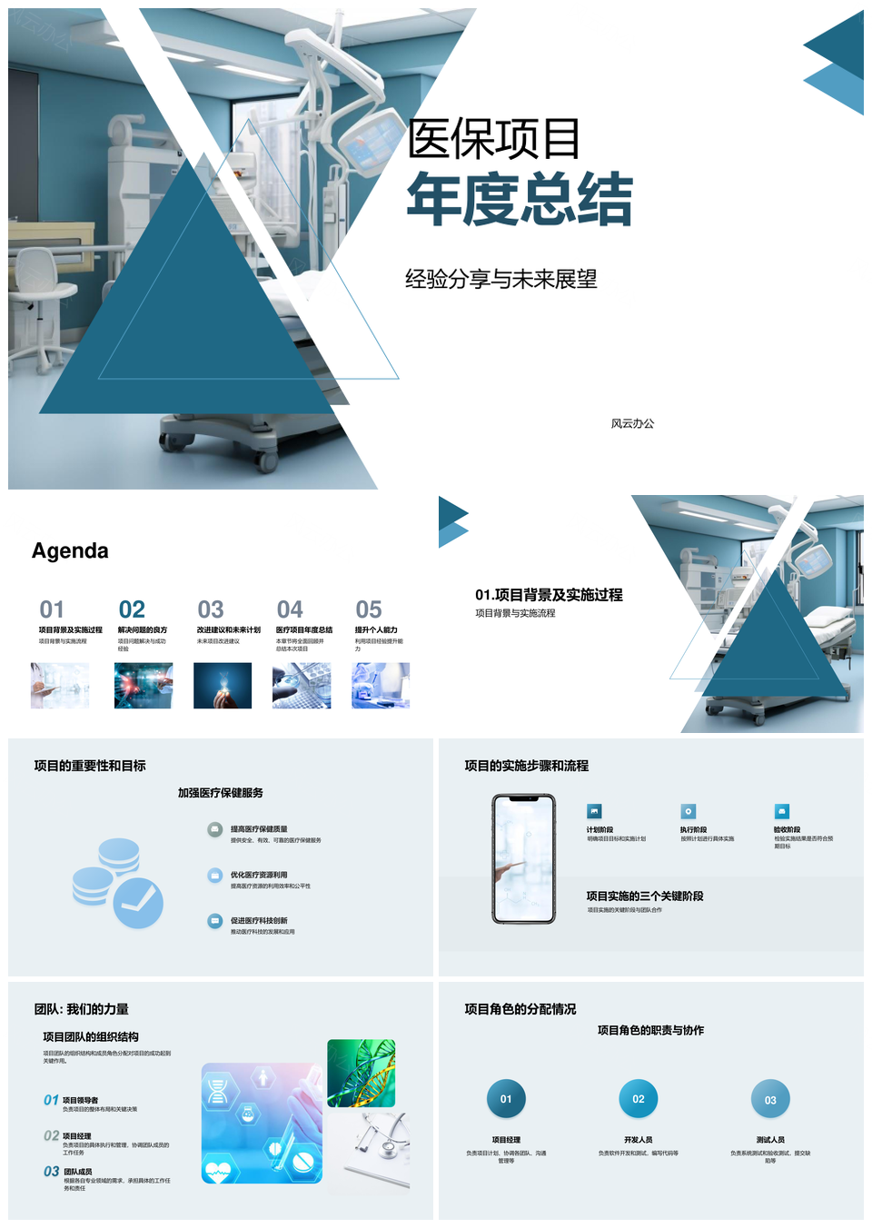这是一张医疗保健项目年度团队管理实施经验总结展望PPT模板,包含医疗保健项目、年度、团队管理、实施经验、总结、展望等主题内容,也可用作医疗保健项目团队管理、医疗保健项目管理实施、年度团队管理实施、项目实施经验总结、管理实施经验总结、医疗保健项目管理、项目团队管理、年度管理实施、实施经验总结、经验总结展望、医疗保健项目、年度团队、管理实施、经验总结、总结展望等PPT场景使用。 风云办公提供的医疗保健项目年度团队管理实施经验总结展望PPT模板,下载格式为pptx,一共33页,作品中文字及图均可以修改和编辑,图片更改请在作品中右键图片并更换,文字修改请直接点击文字进行修改。