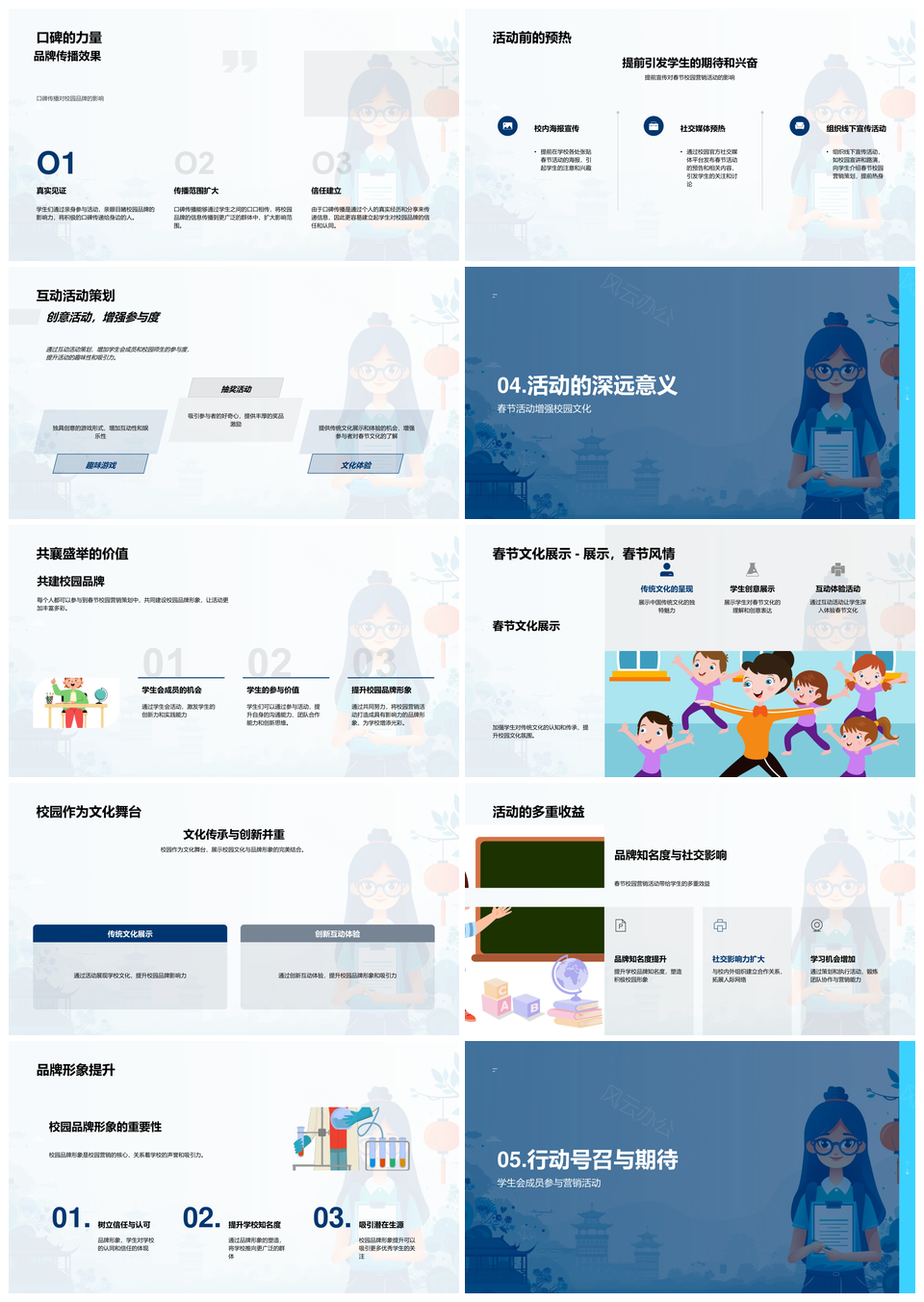 2025春节校园营销策划品牌大使宣传设计互动方案PPT模板推荐