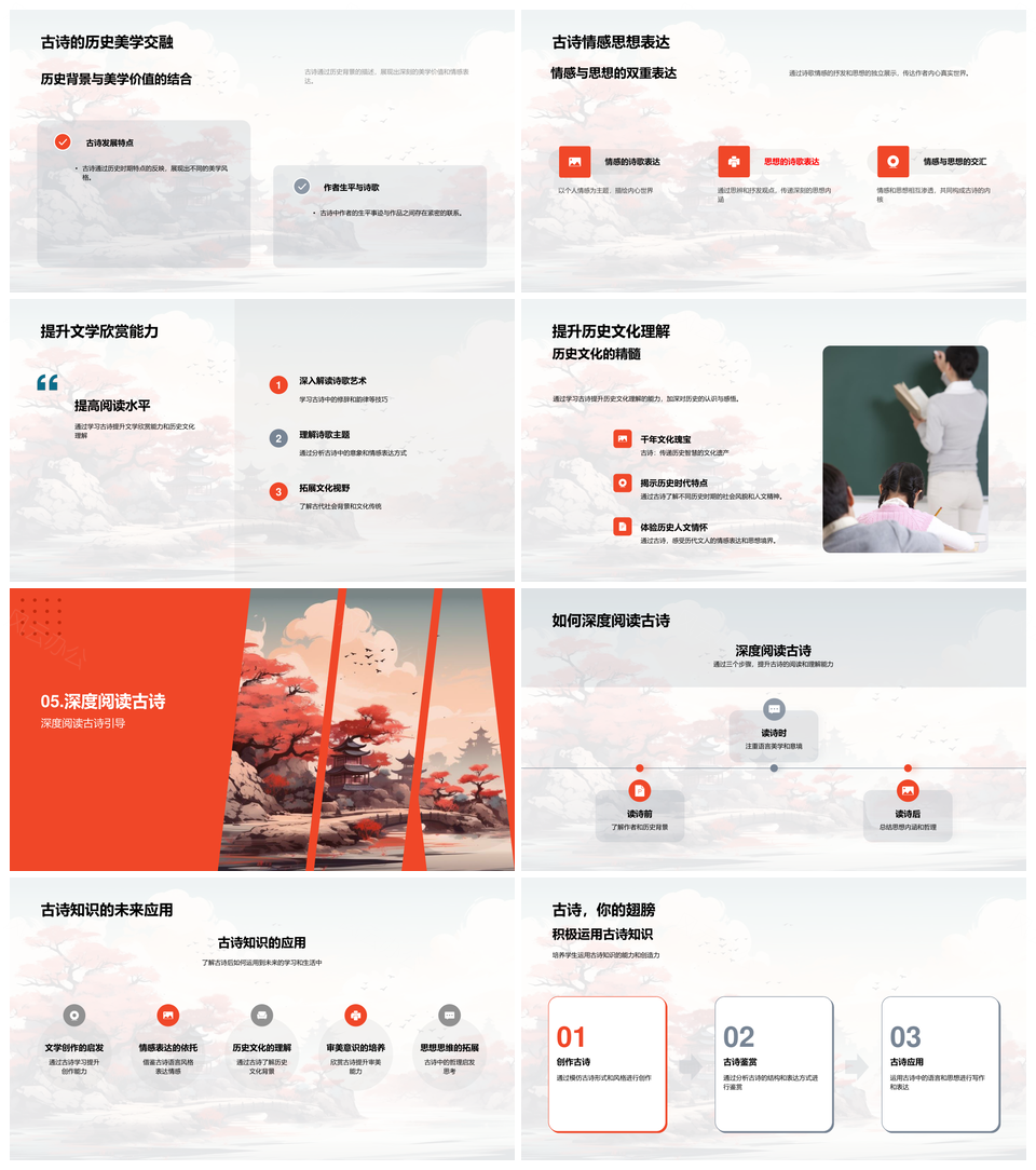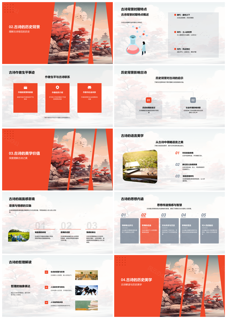 风云办公提供的古诗历史美学融入高中文学教学赏析PPT模板,下载格式为pptx,一共26页,作品中文字及图均可以修改和编辑,图片更改请在作品中右键图片并更换,文字修改请直接点击文字进行修改。