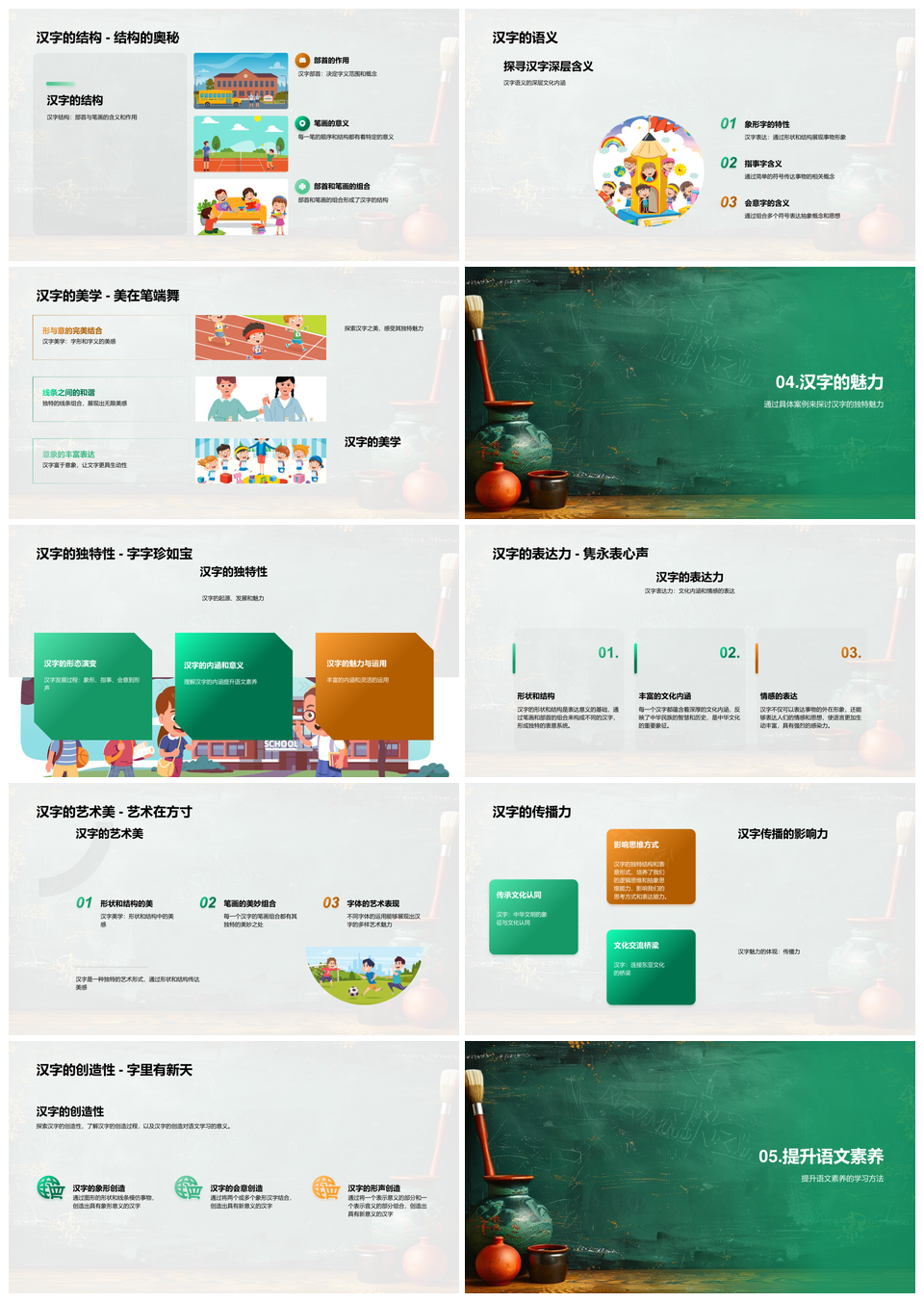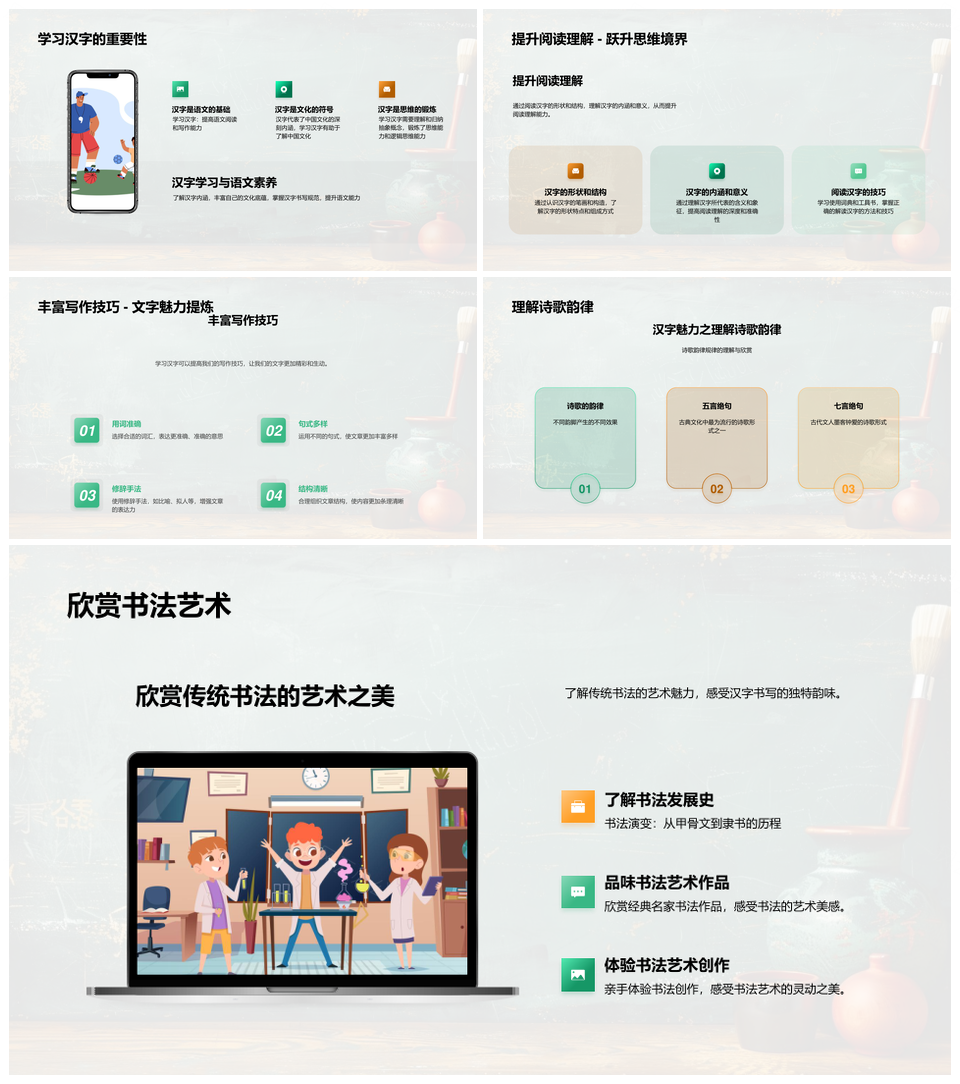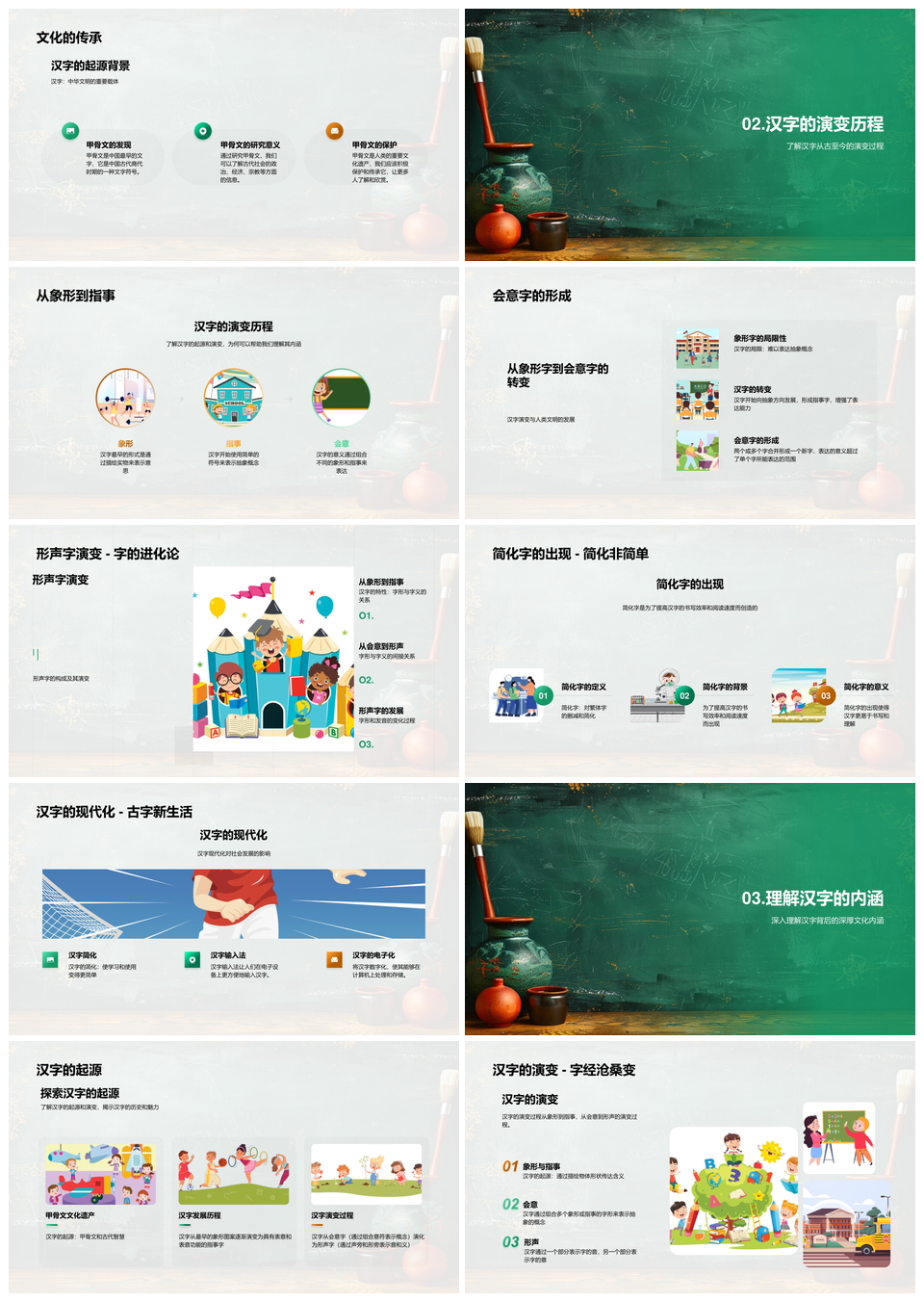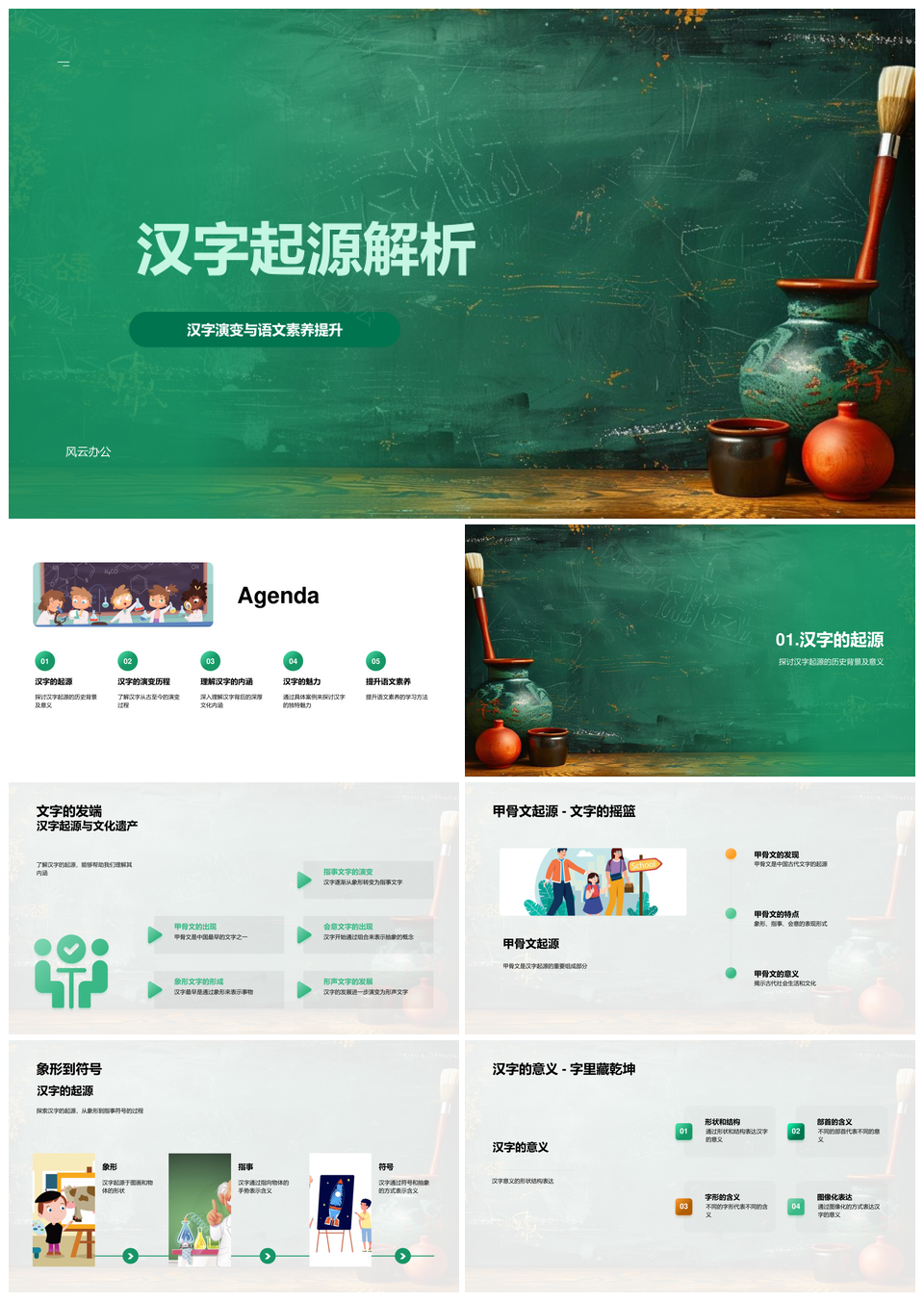这是一张汉字起源演变解析语文素养文化遗产传承PPT模板,包含汉字起源、演变解析、语文素养、文化遗产、传承等主题内容,也可用作汉字起源演变解析、语文素养文化遗产、素养文化遗产传承、演变解析语文素养、解析语文素养文化、汉字起源演变、起源演变解析、演变解析语文、解析语文素养、语文素养文化、素养文化遗产、文化遗产传承、汉字起源、起源演变、遗产传承等PPT场景使用。 风云办公提供的汉字起源演变解析语文素养文化遗产传承PPT模板,下载格式为pptx,一共33页,作品中文字及图均可以修改和编辑,图片更改请在作品中右键图片并更换,文字修改请直接点击文字进行修改。