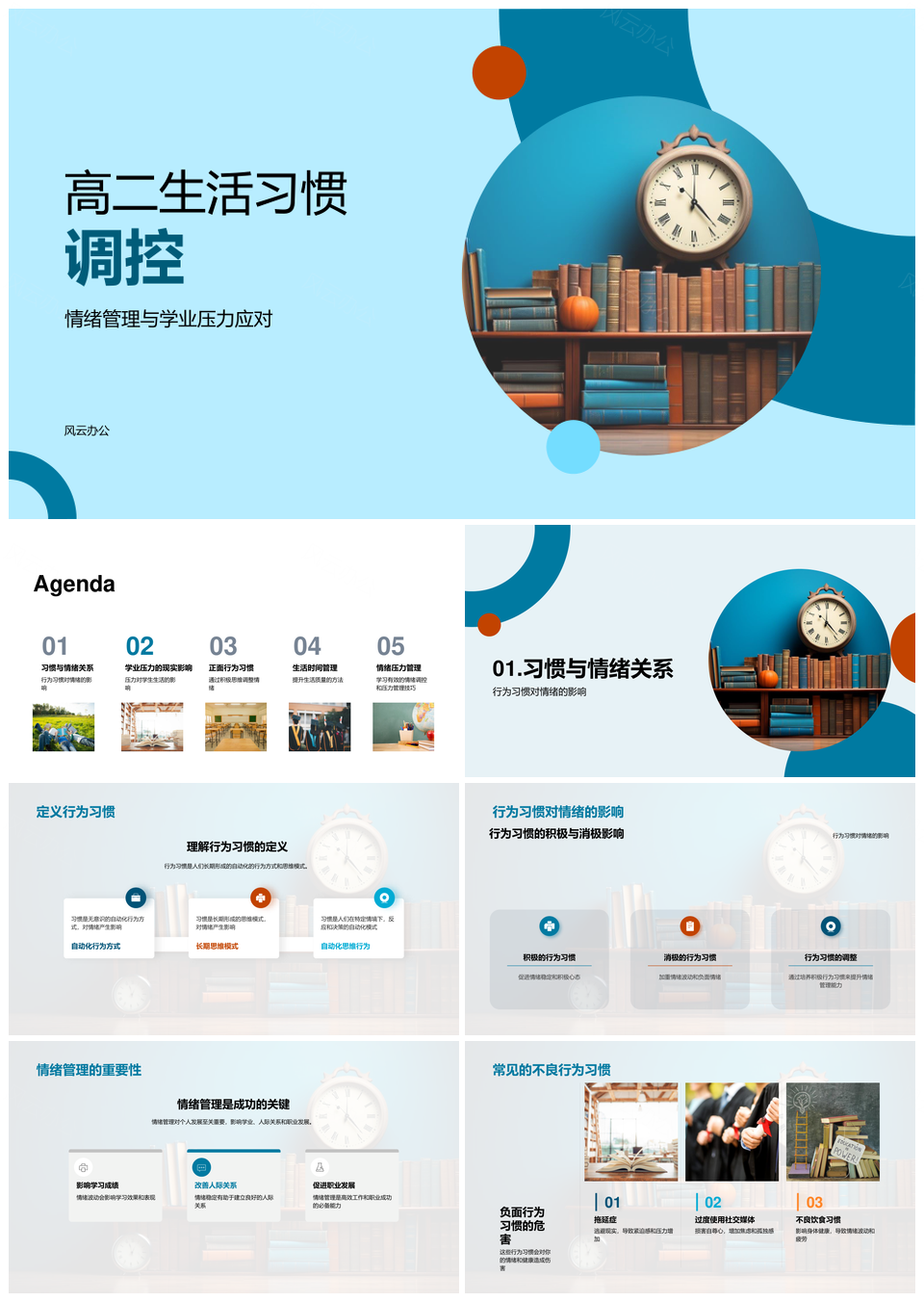高二情绪学业压力调控与健康时间习惯管理PPT模板推荐