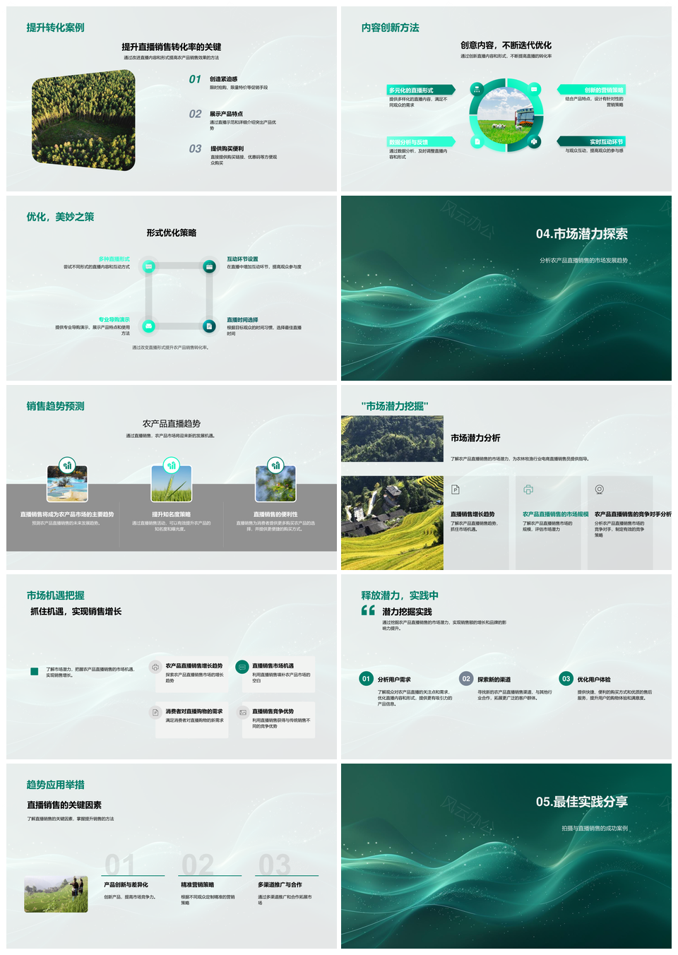 这是一张农产品直播销售策略互动内容优化市场潜力PPT模板,包含农产品、直播、销售策略、互动内容、优化、市场潜力等主题内容,也可用作农产品直播销售策略、直播销售策略互动、销售策略互动内容、策略互动内容优化、互动内容优化市场、内容优化市场潜力、农产品直播互动内容、直播互动内容优化、销售策略内容优化、策略内容优化市场、互动内容市场潜力、直播销售优化市场、农产品策略内容优化、销售互动优化市场、策略优化市场潜力等PPT场景使用。 风云办公提供的农产品直播销售策略互动内容优化市场潜力PPT模板,下载格式为pptx,一共33页,作品中文字及图均可以修改和编辑,图片更改请在作品中右键图片并更换,文字修改请直接点击文字进行修改。