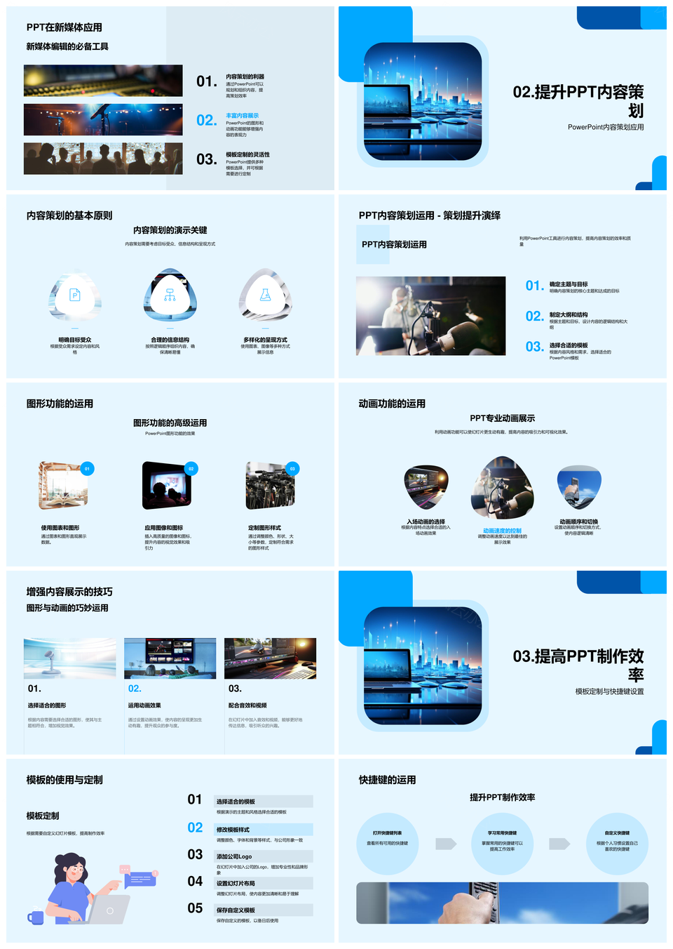 风云办公提供的新媒体PPT图形动画模板定制提升办公效率,下载格式为pptx,一共33页,作品中文字及图均可以修改和编辑,图片更改请在作品中右键图片并更换,文字修改请直接点击文字进行修改。