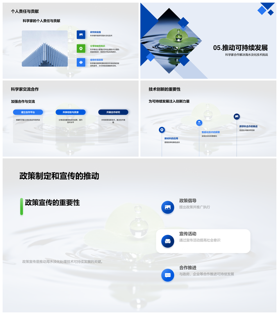 风云办公提供的海水淡化绿色技术创新合作研究PPT模板,下载格式为pptx,一共23页,作品中文字及图均可以修改和编辑,图片更改请在作品中右键图片并更换,文字修改请直接点击文字进行修改。