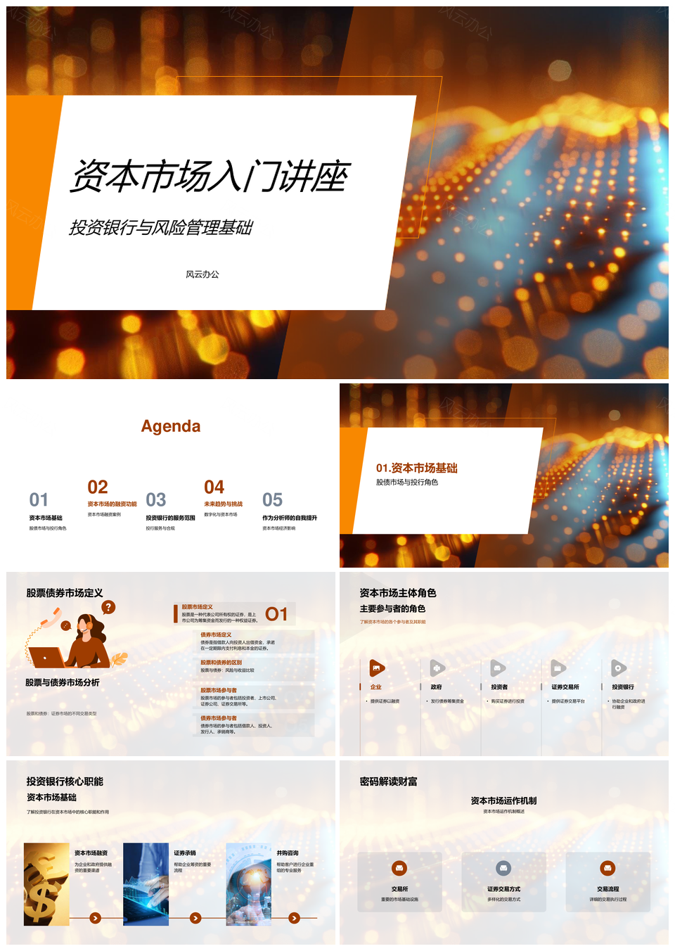 这是一张资本市场投资银行股债融资风险管理证券承销PPT模板,包含资本市场、投资银行、股债融资、风险管理、证券承销等主题内容,也可用作资本市场、投资银行、股债融资、风险管理、资本市场、投资银行、股债融资、证券承销、资本市场、投资银行、风险管理、证券承销、资本市场、股债融资、风险管理、证券承销、投资银行、股债融资、风险管理、证券承销、资本市场、投资银行、股债融资、资本市场、投资银行、风险管理、资本市场、投资银行、证券承销、资本市场、股债融资、风险管理、资本市场、股债融资、证券承销、资本市场、风险管理、证券承销、投资银行、股债融资、风险管理、投资银行、股债融资、证券承销、投资银行、风险管理、证券承销、股债融资、风险管理、证券承销等PPT场景使用。 风云办公提供的资本市场投资银行股债融资风险管理证券承销PPT模板,下载格式为pptx,一共33页,作品中文字及图均可以修改和编辑,图片更改请在作品中右键图片并更换,文字修改请直接点击文字进行修改。