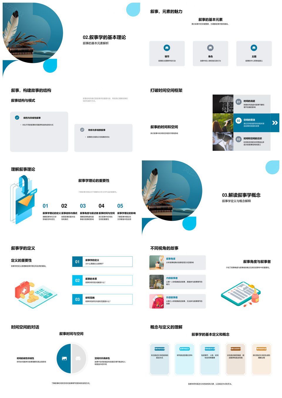 叙事学理论应用开启文教影剧多领域之书PPT模板