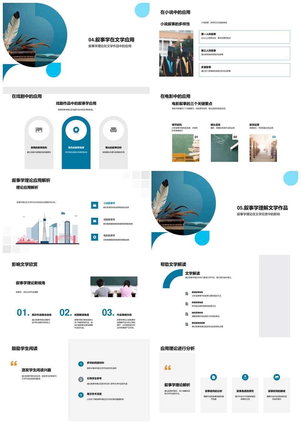 叙事学理论应用开启文教影剧多领域之书PPT模板推荐