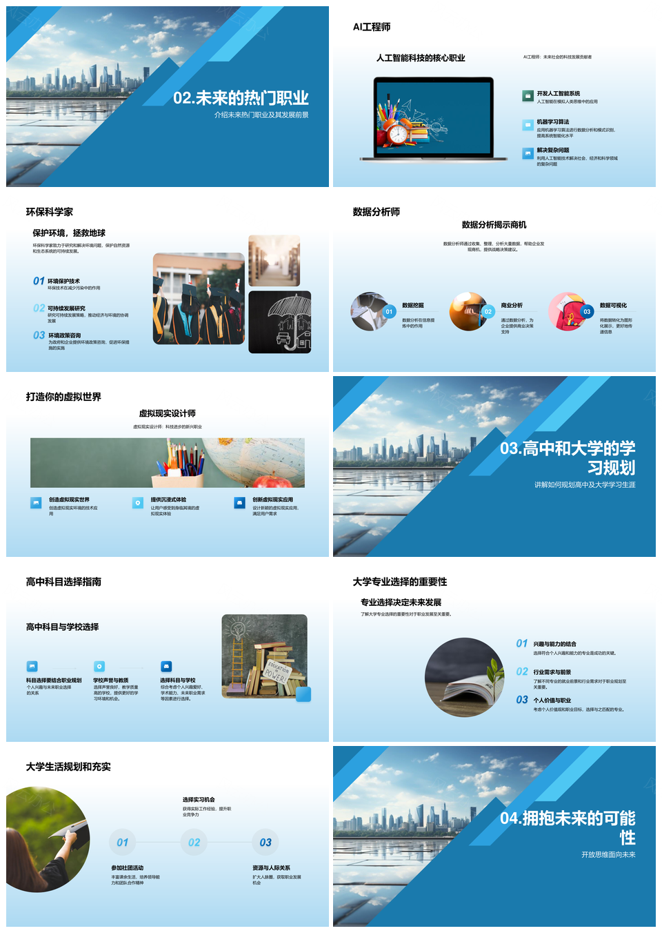 这是一张未来职业规划与科技环保全球化趋势变革PPT模板,包含未来、职业规划、科技、环保、全球化、趋势、变革等主题内容,也可用作未来职业规划科技、职业规划科技环保、规划科技环保全球化、科技环保全球化趋势、环保全球化趋势变革、未来职业规划、职业规划科技、规划科技环保、科技环保全球化、环保全球化趋势、全球化趋势变革、未来职业、职业规划、科技环保、全球化趋势等PPT场景使用。 风云办公提供的未来职业规划与科技环保全球化趋势变革PPT模板,下载格式为pptx,一共25页,作品中文字及图均可以修改和编辑,图片更改请在作品中右键图片并更换,文字修改请直接点击文字进行修改。