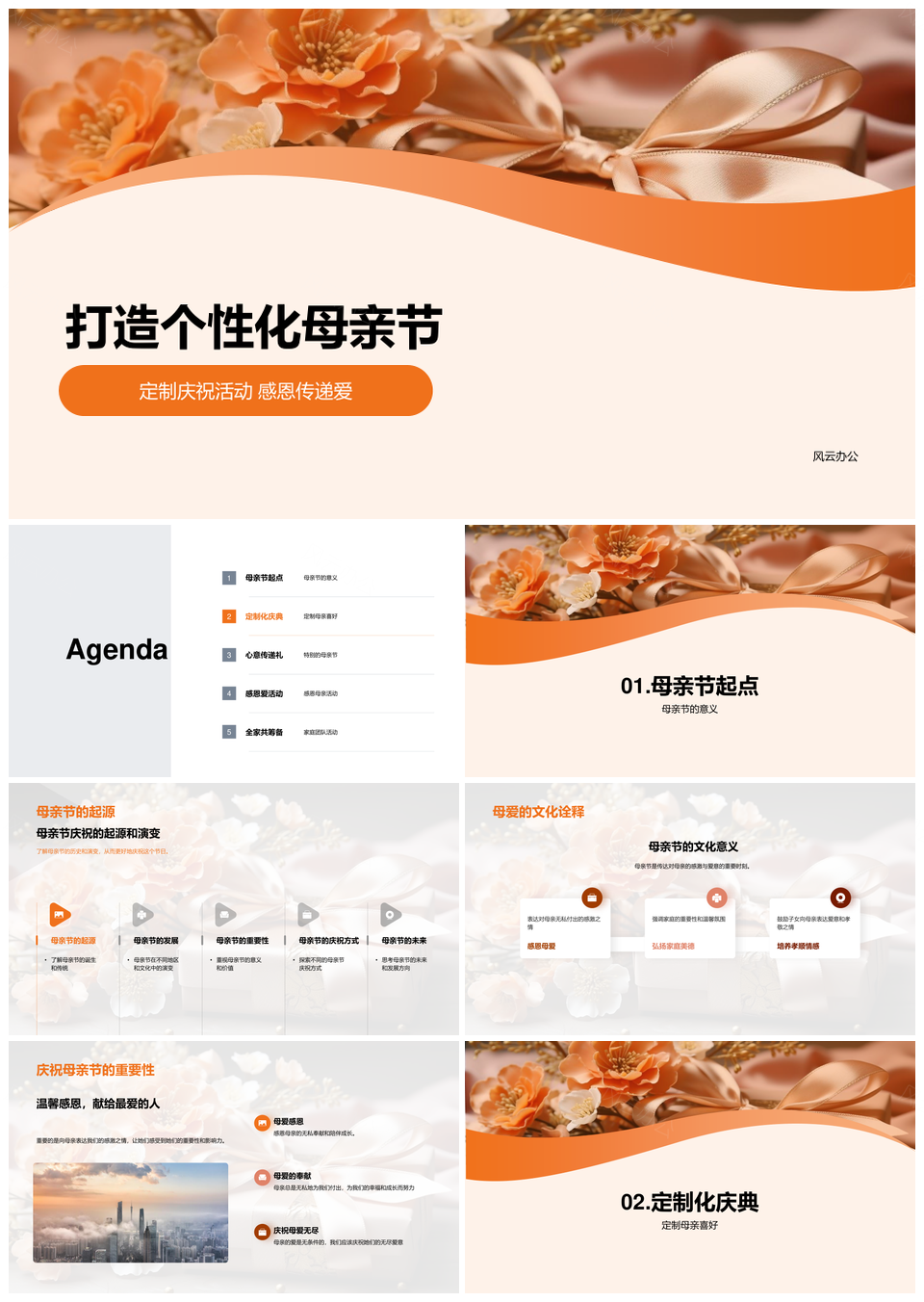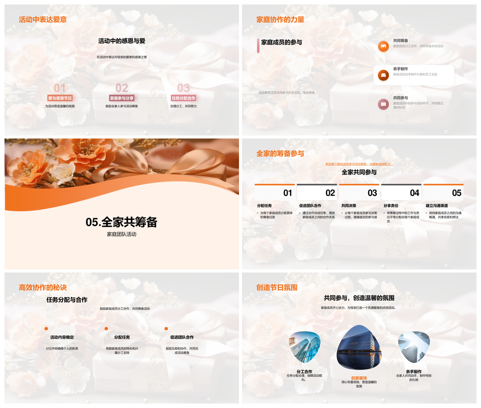 这款橙色系节日主题模板专为温馨场景设计,聚焦视觉愉悦感与实用性。采用原创手绘插画搭配柔光质感背景,自主研发的渐变色卡确保专业呈现力,灵感源自节日烟火与秋日暖阳的交织氛围。模块化布局支持创意重组,自定义图标库可搭配个性化标题,灵活适配企业年会、家庭聚会、主题活动等场景。所有视觉元素均为独家原创,从字体到装饰线条均经过专业设计校准,帮助用户轻松驾驭节日表达,传递温暖而不失专业的视觉语言。